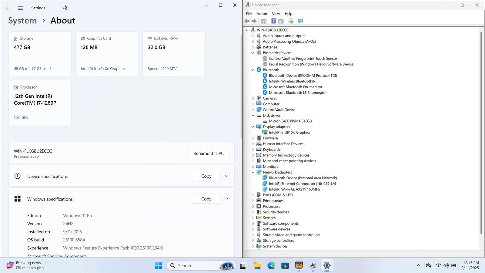 Dell PRECISION 3570 15" FHD Touch I7-1280P 512GB SSD 32GB W11P Webcam Warranty