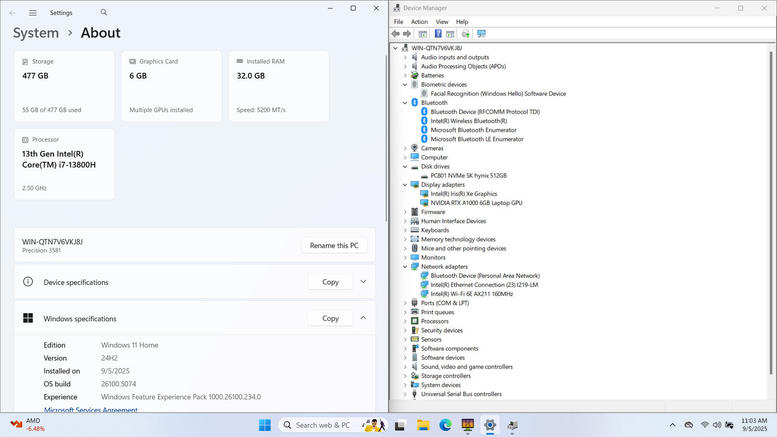 Dell Precision 3581 15" FHD I7-13800H 512GB SSD 32GB W11 RTX A1000 6GB *READ*