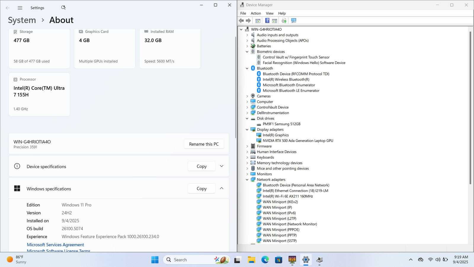 Dell Precision 3591 15" FHD Touch ULTRA 7 155H 512GB SSD 32GB W11P RTX 500