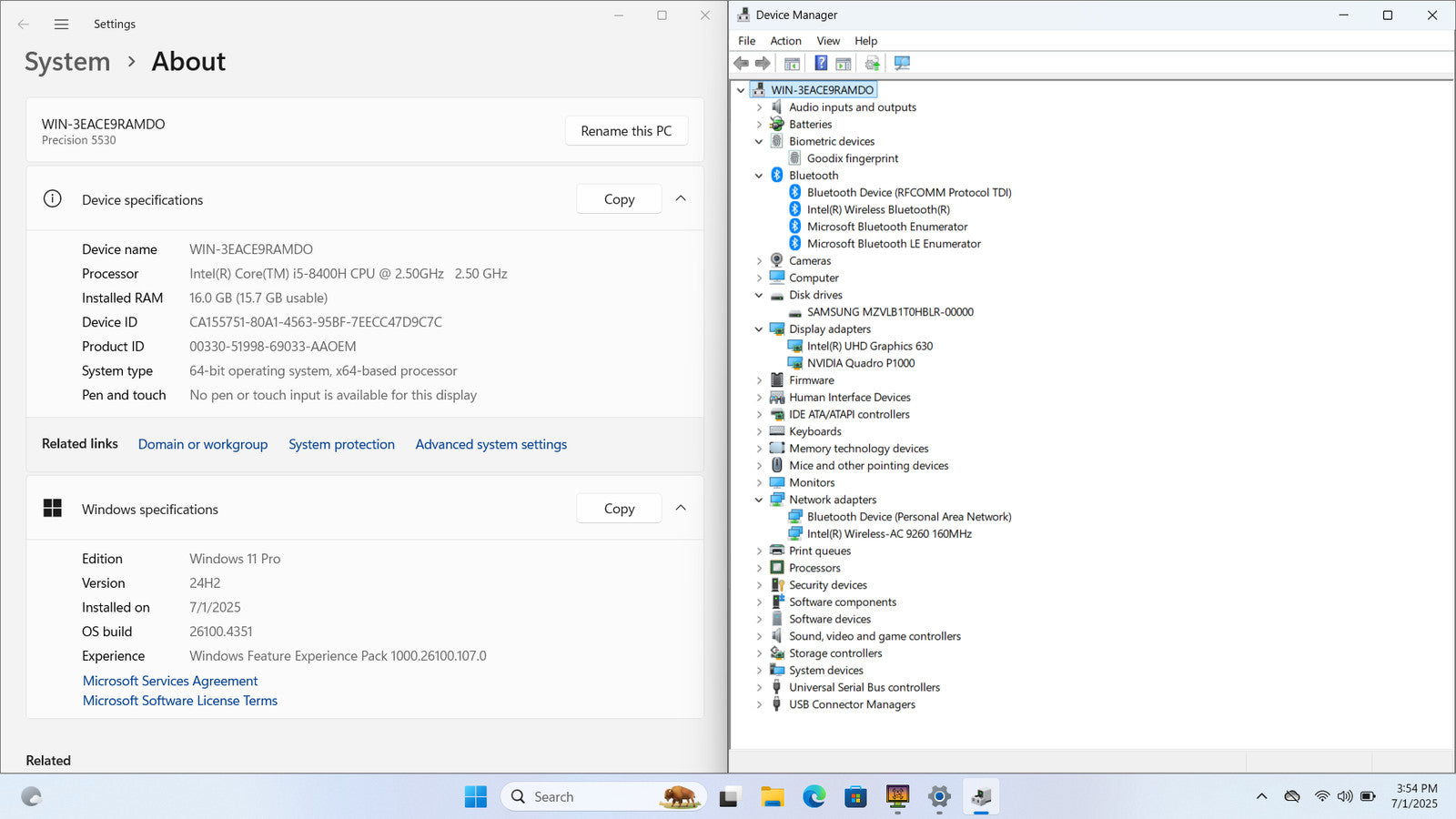 Dell Precision 5530 15" FHD I5-8400H 1TB SSD 16GB W11P Quadro P1000 FP Reader