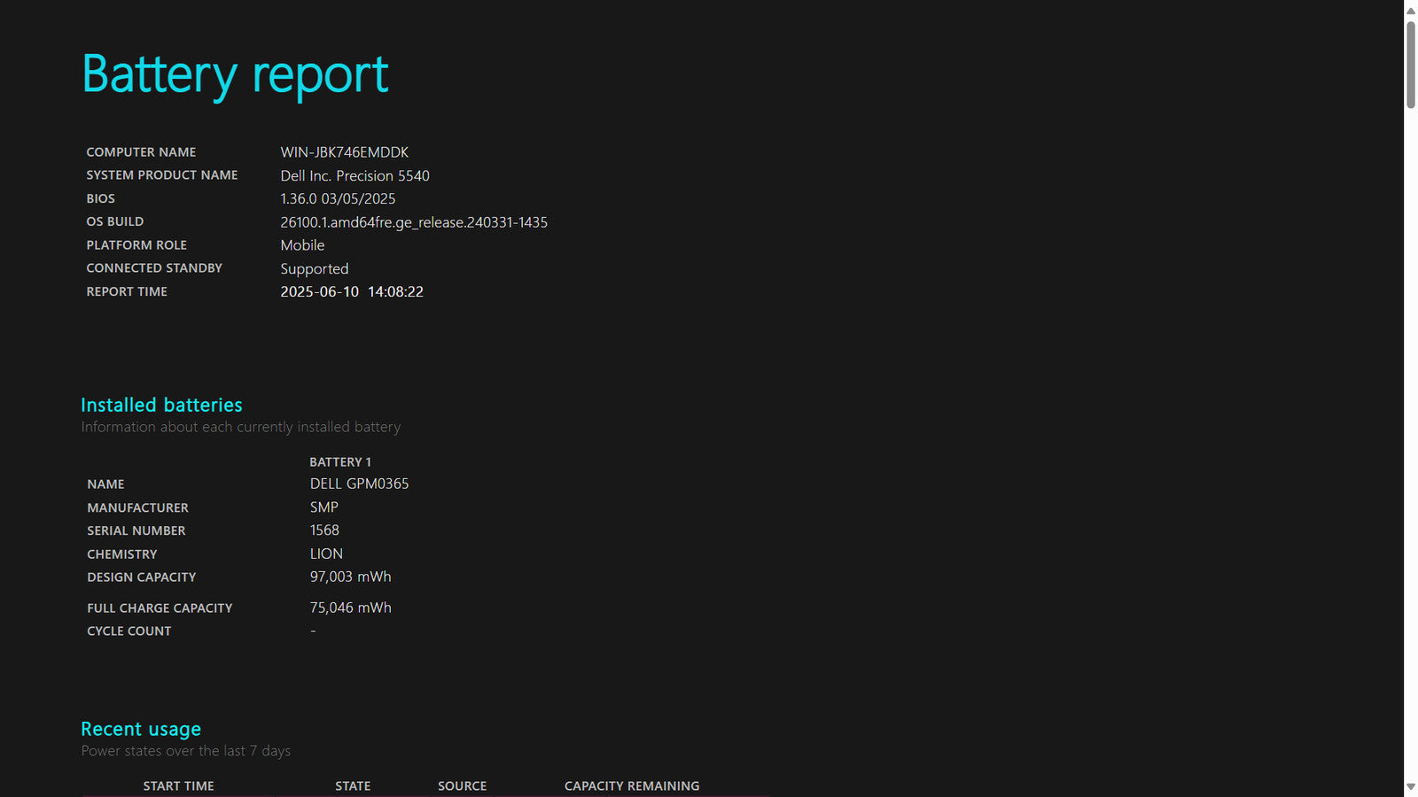Battery Condition: 75,046/97,003 mWh 77.36%