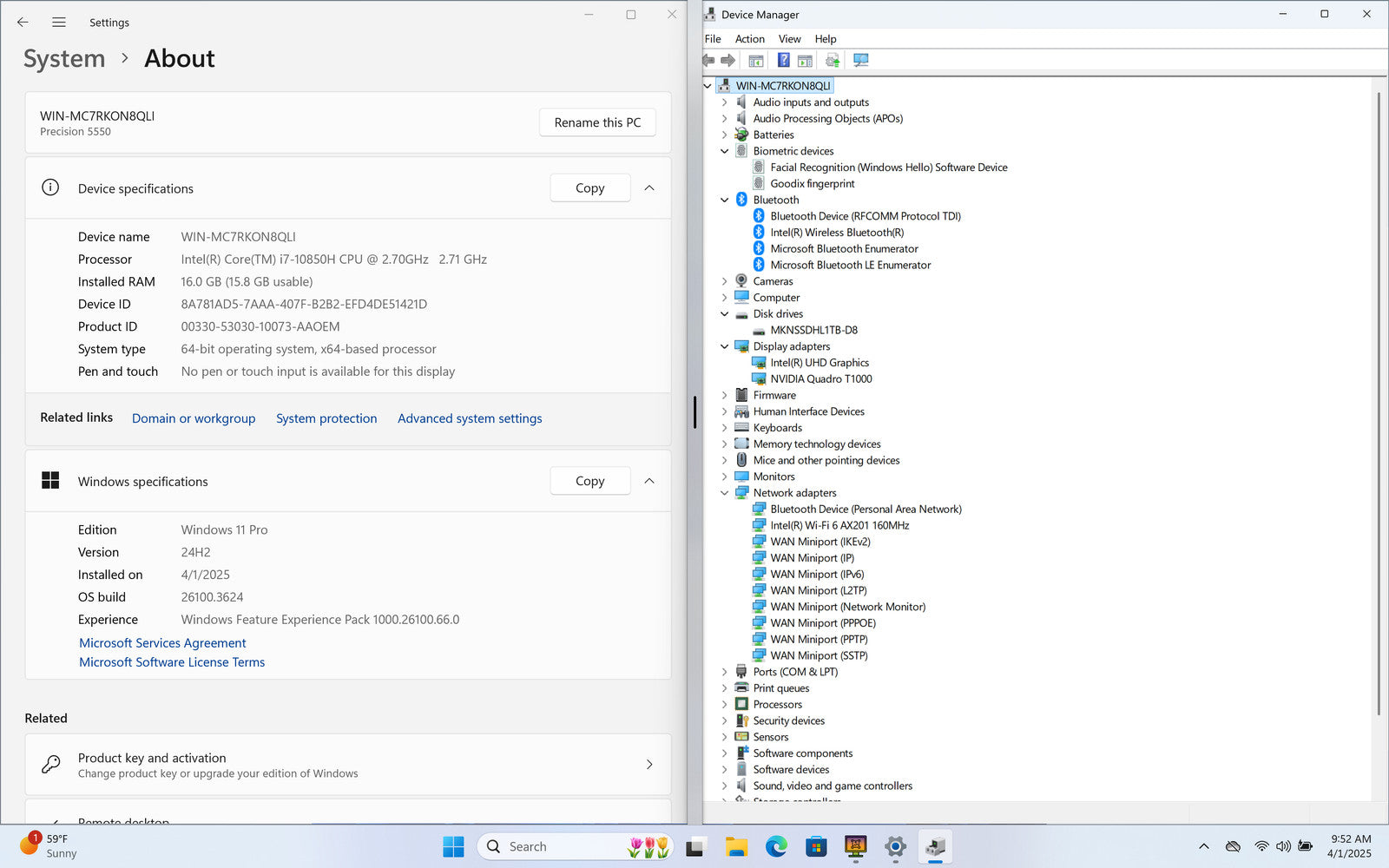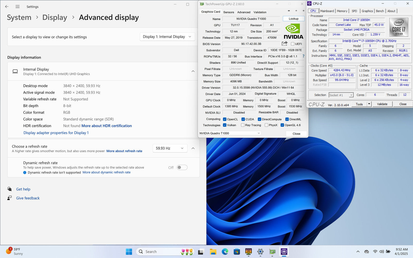 Dell PRECISION 5550 15.6 I7-10850H 1TB SSD 16GB W10P Quadro T1000 Webcam *READ*