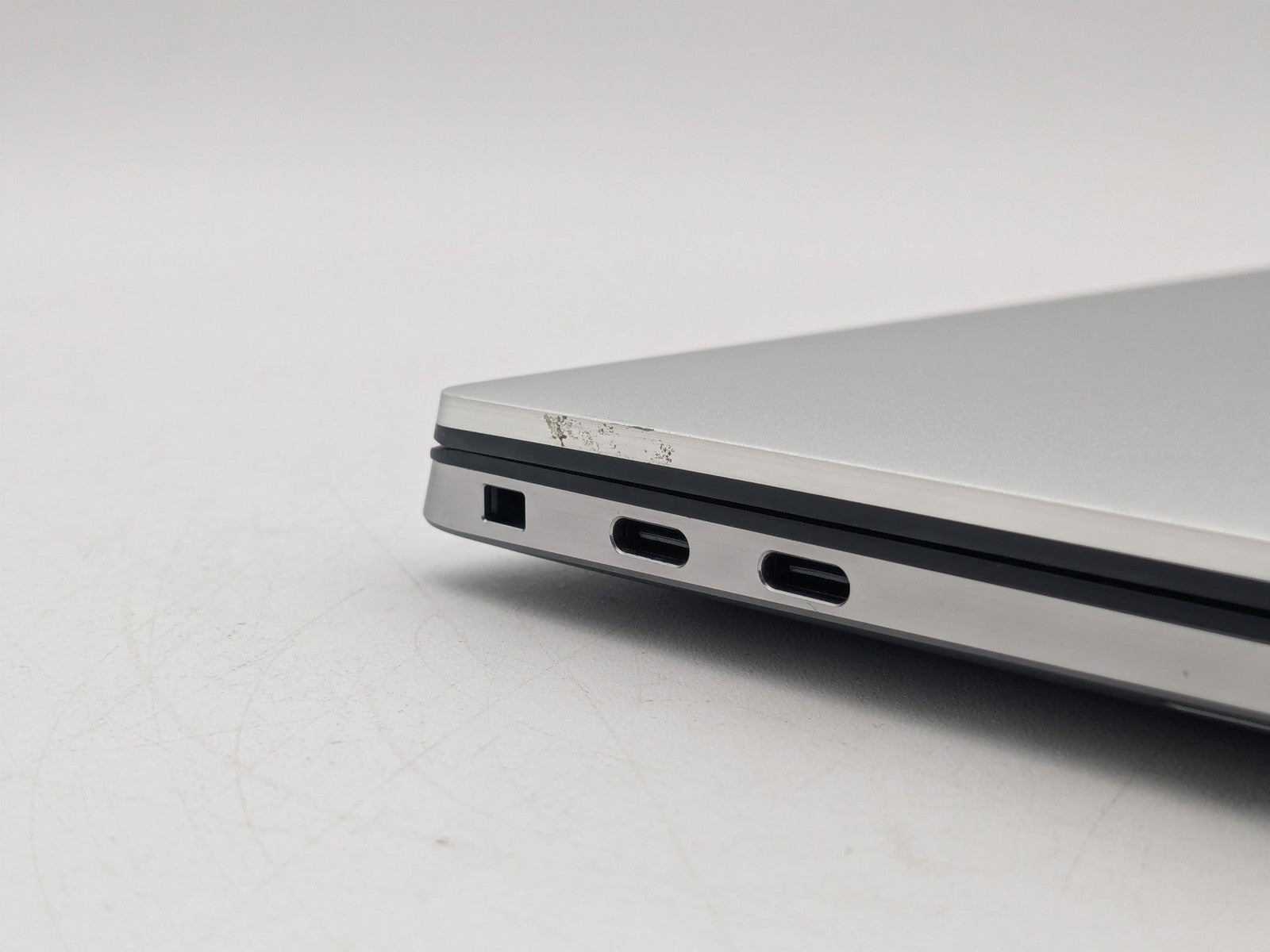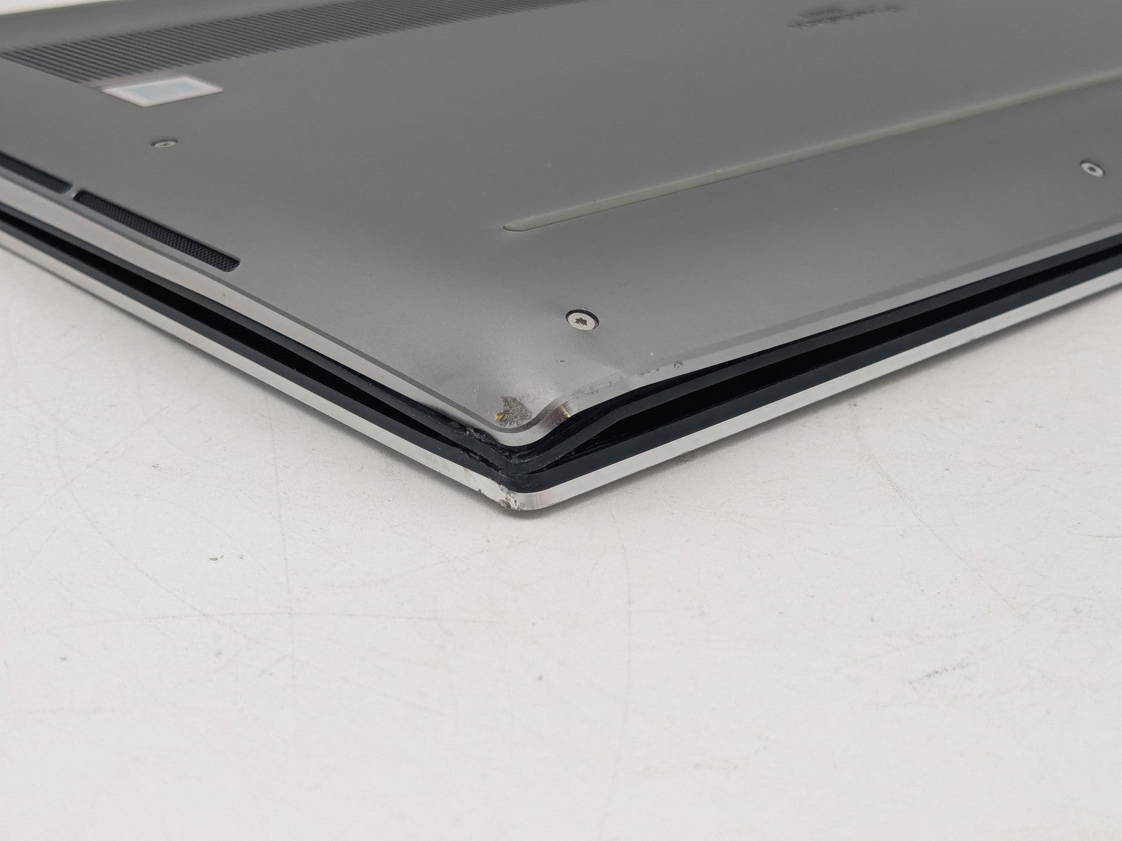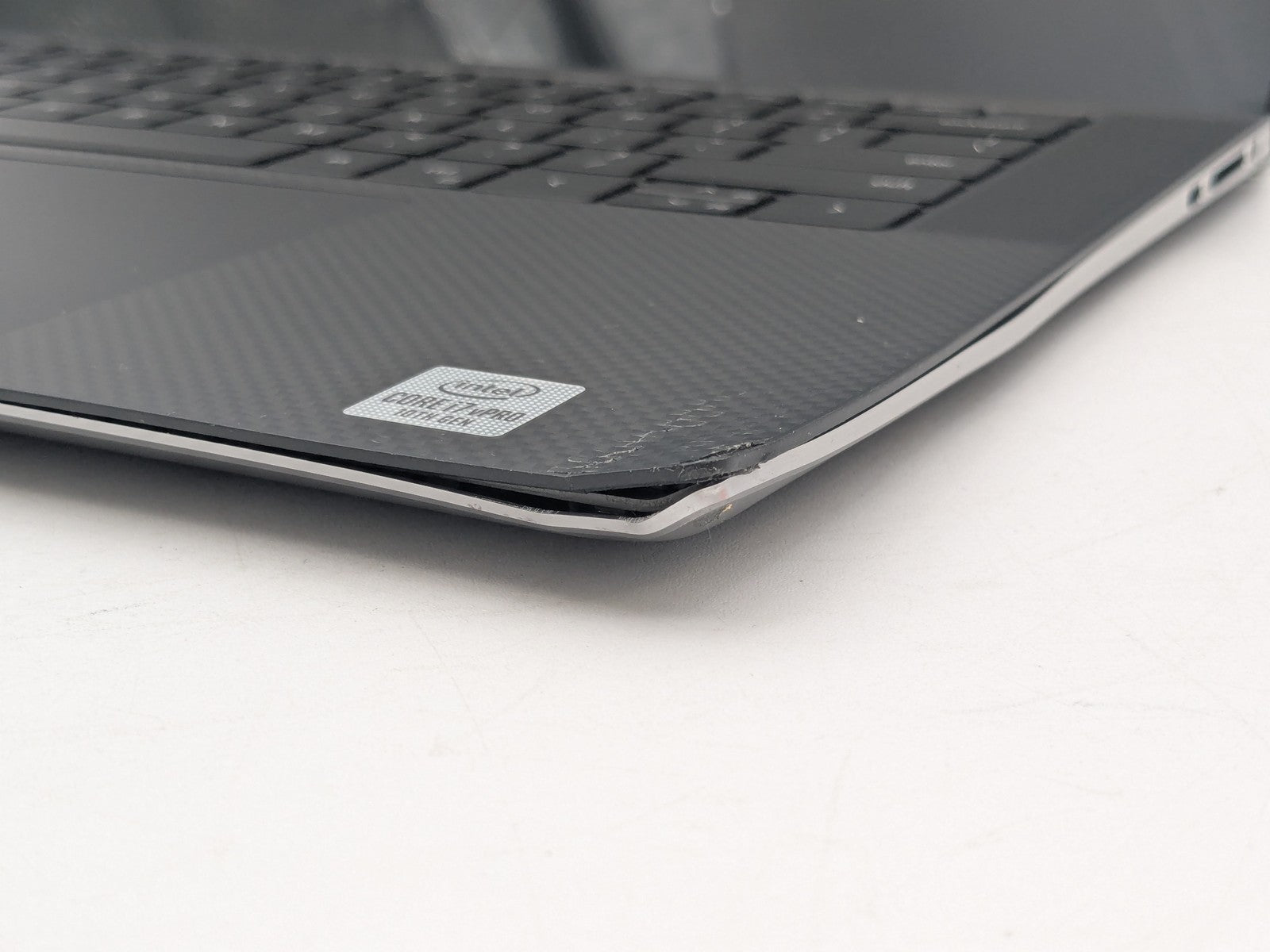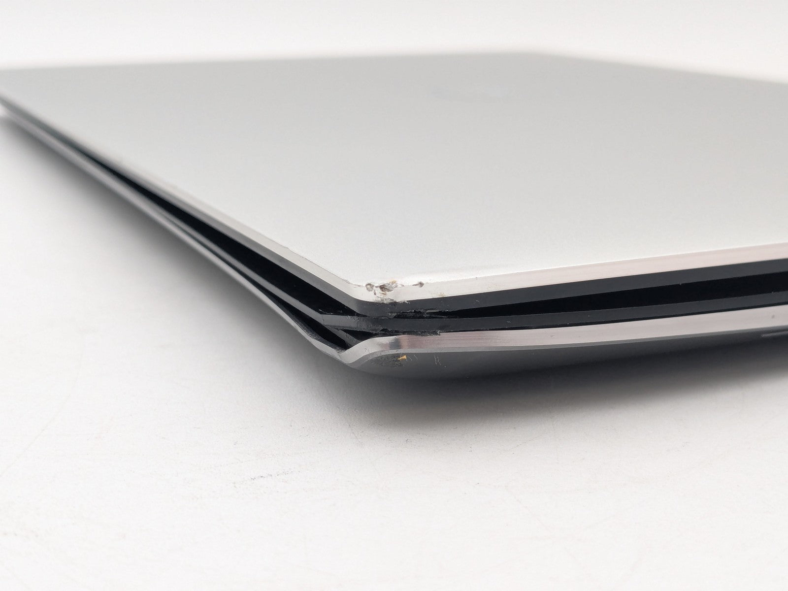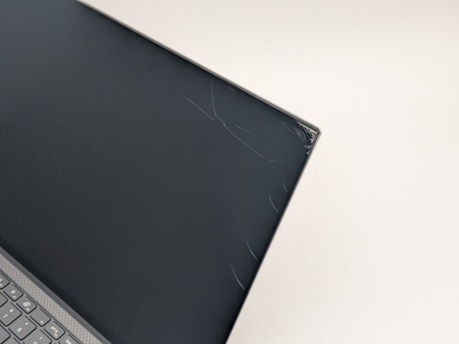 Cosmetic Defects: Interior: Display cracked/shattered, mainly upper right corner. Most of display still visible. Palm rest bent, front right corner. Light wear on keyboard/touchpad. Backspace key loose. Exterior: Top cover has dent, front right corner/scratches. Bottom cover has dent, front right corner/scratches.