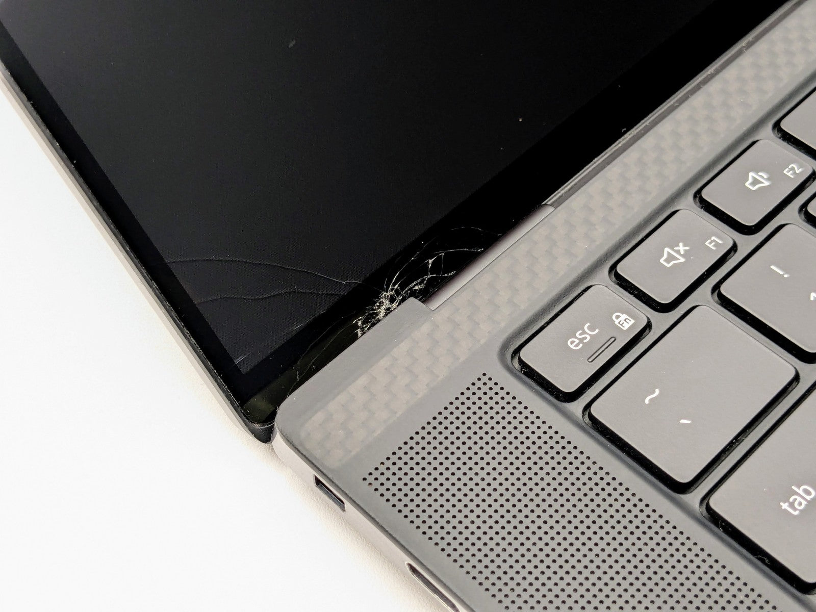Cosmetic Defects: Interior: Marks on display, visible during normal use, cracked on lower left corner. Visible wear on keyboard and touchpad, light wear on palm rest. Some keys are a little resistant, no functionality lost. Exterior: Light wear and visible scratches on lid and bottom cover. Wear and scuffs around edges of device.