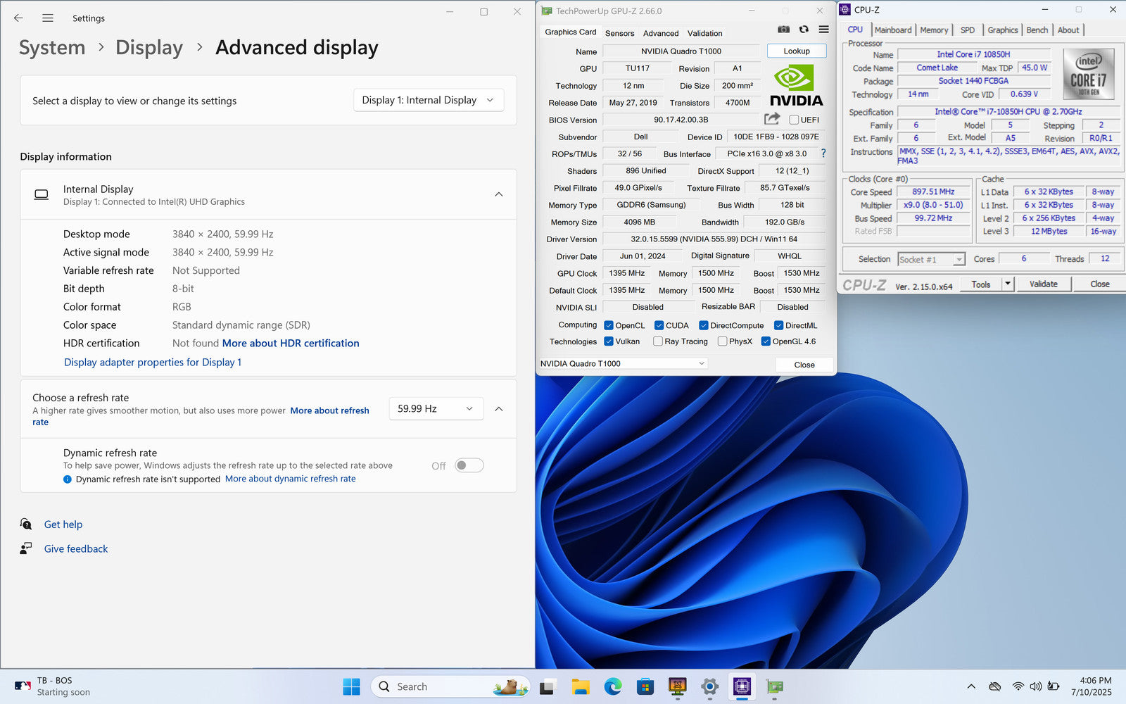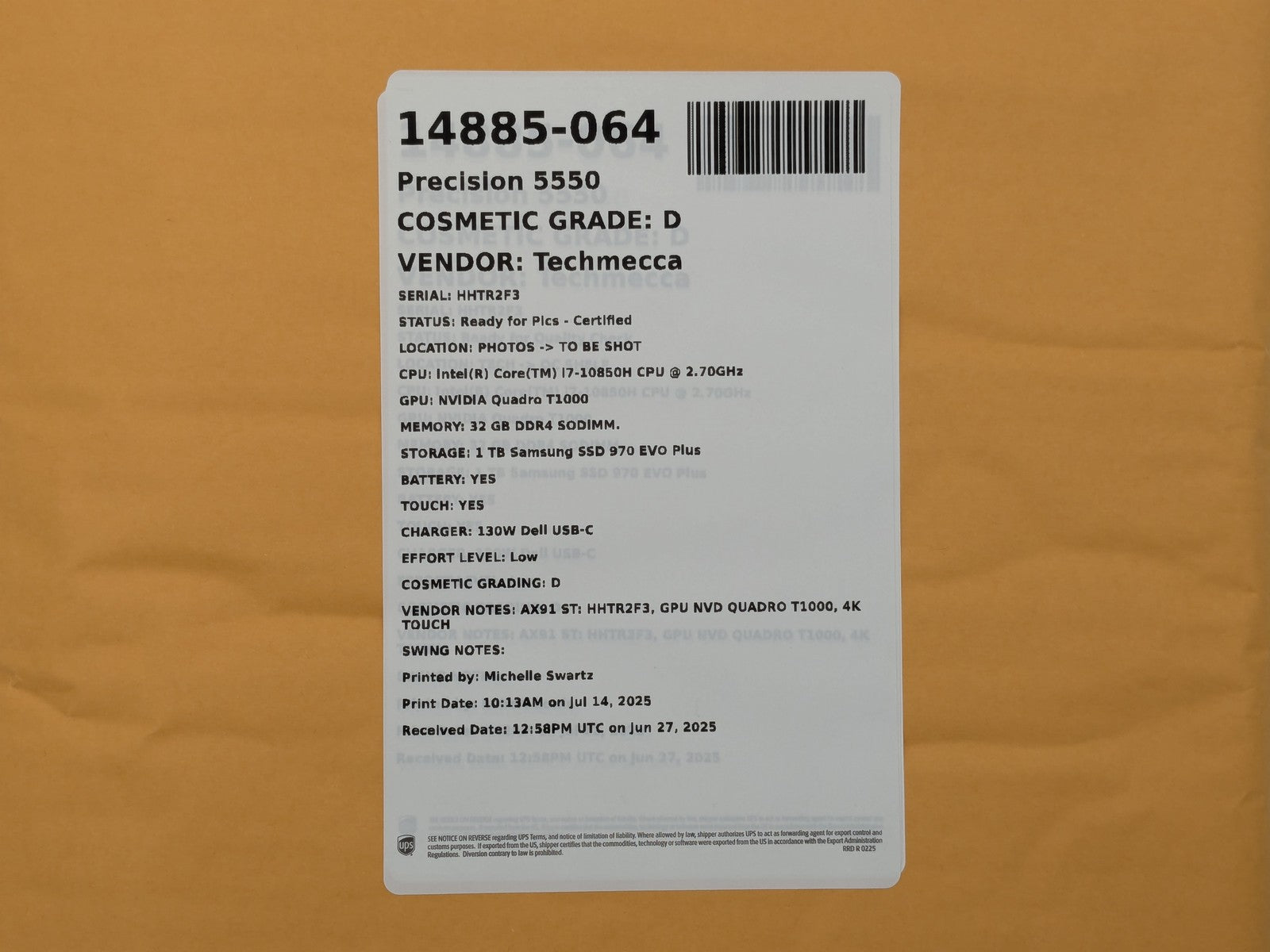 Dell Precision 5550 15" UHD+ 4K+ Touch I7-10850H 1TB SSD 32GB W11P Quadro T1000
