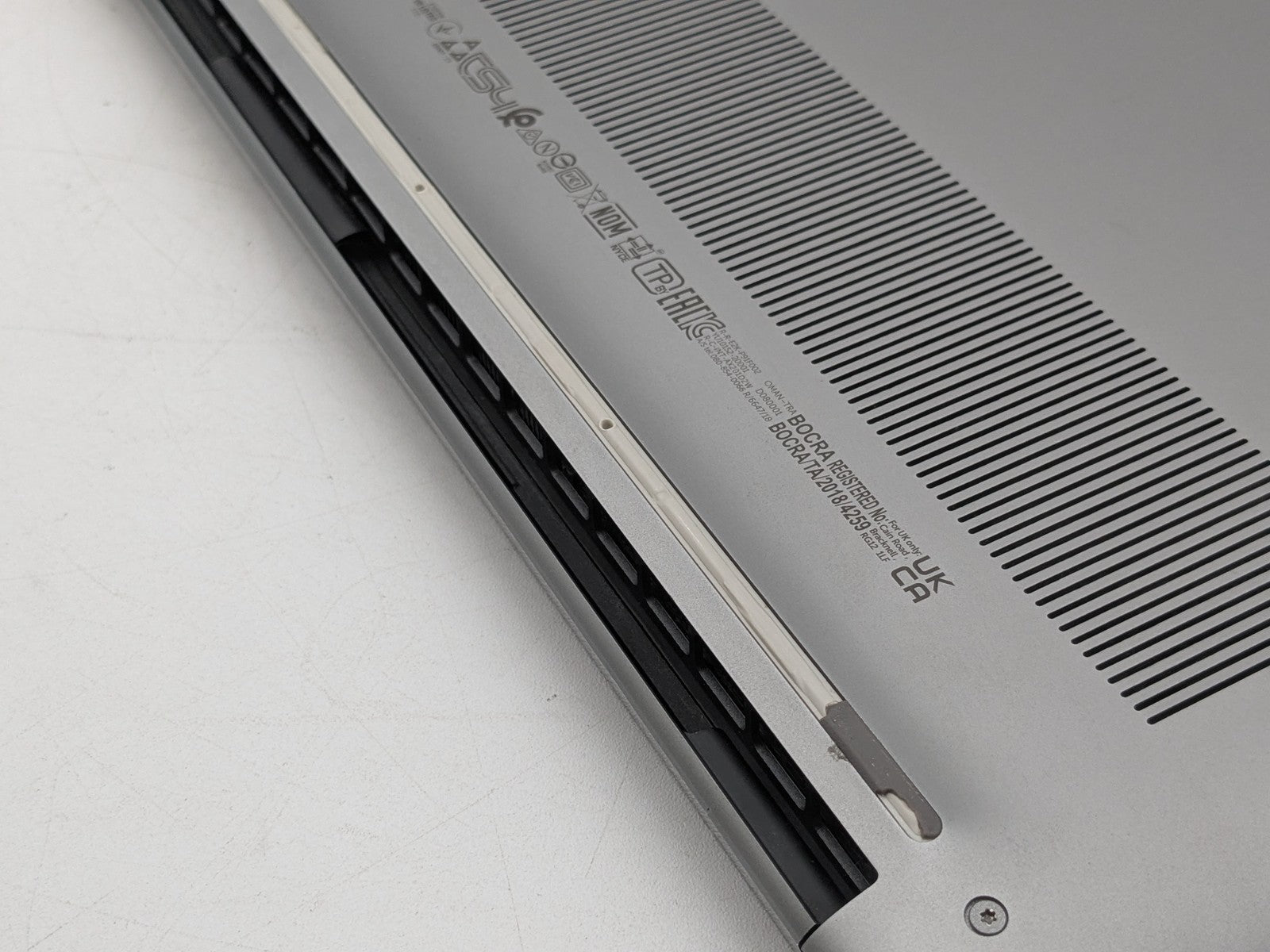 Cosmetic Defects: Interior: Display has visible keyboard imprinting. Light wear on keyboard and palm rest. Exterior: Visible wear and scratches on lid and bottom cover. Bottom rubber feet damaged.