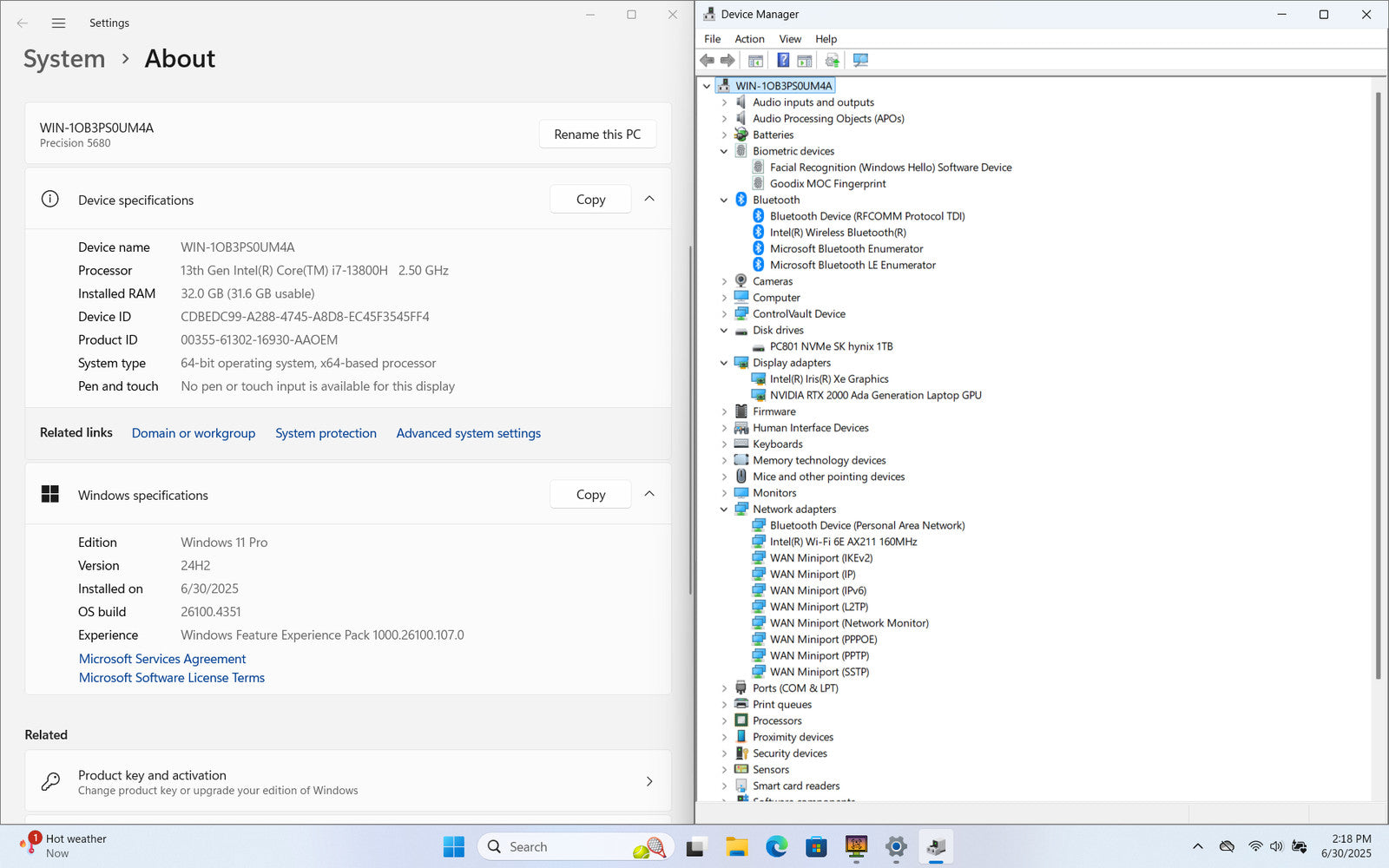 DELL Precision 5680 16" FHD+ 13TH I7-13800H 1TB SSD 32GB W11P RTX 2000 Warranty