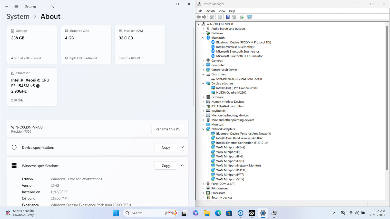 DELL Precision 7520 15" FHD XEON E3-1545M V5 256GB SSD 32GB W11P Webcam Backlit