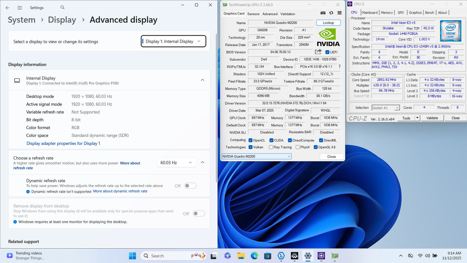 DELL Precision 7520 15" FHD XEON E3-1545M V5 256GB SSD 32GB W11P Webcam Backlit