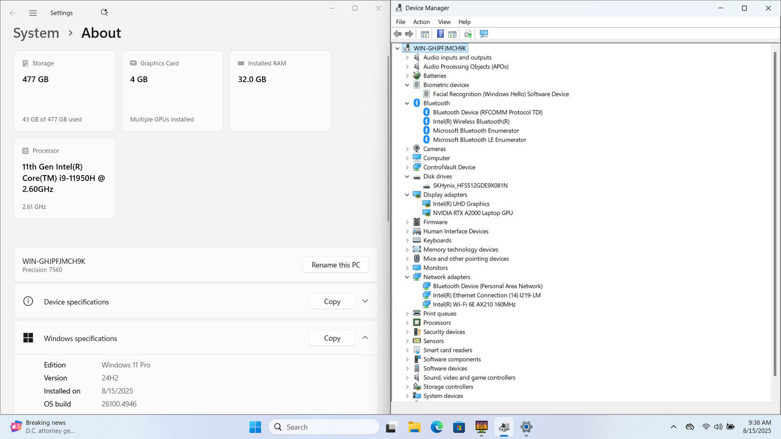 Dell Precision 7560 15" FHD Touch I9-11950H 512GB 32GB W11P RTX A2000 Backlit