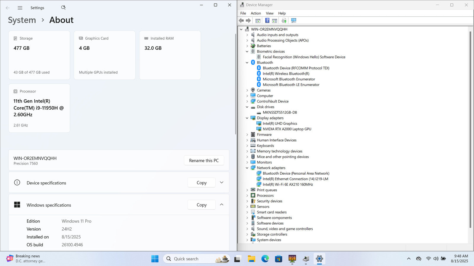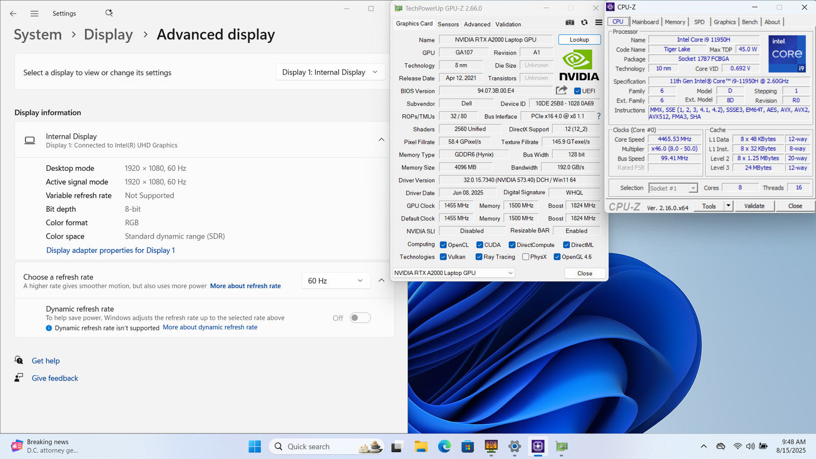 Dell Precision 7560 15" FHD Touch I9-11950H 512GB SSD 32GB W11P RTX A2000 GPU