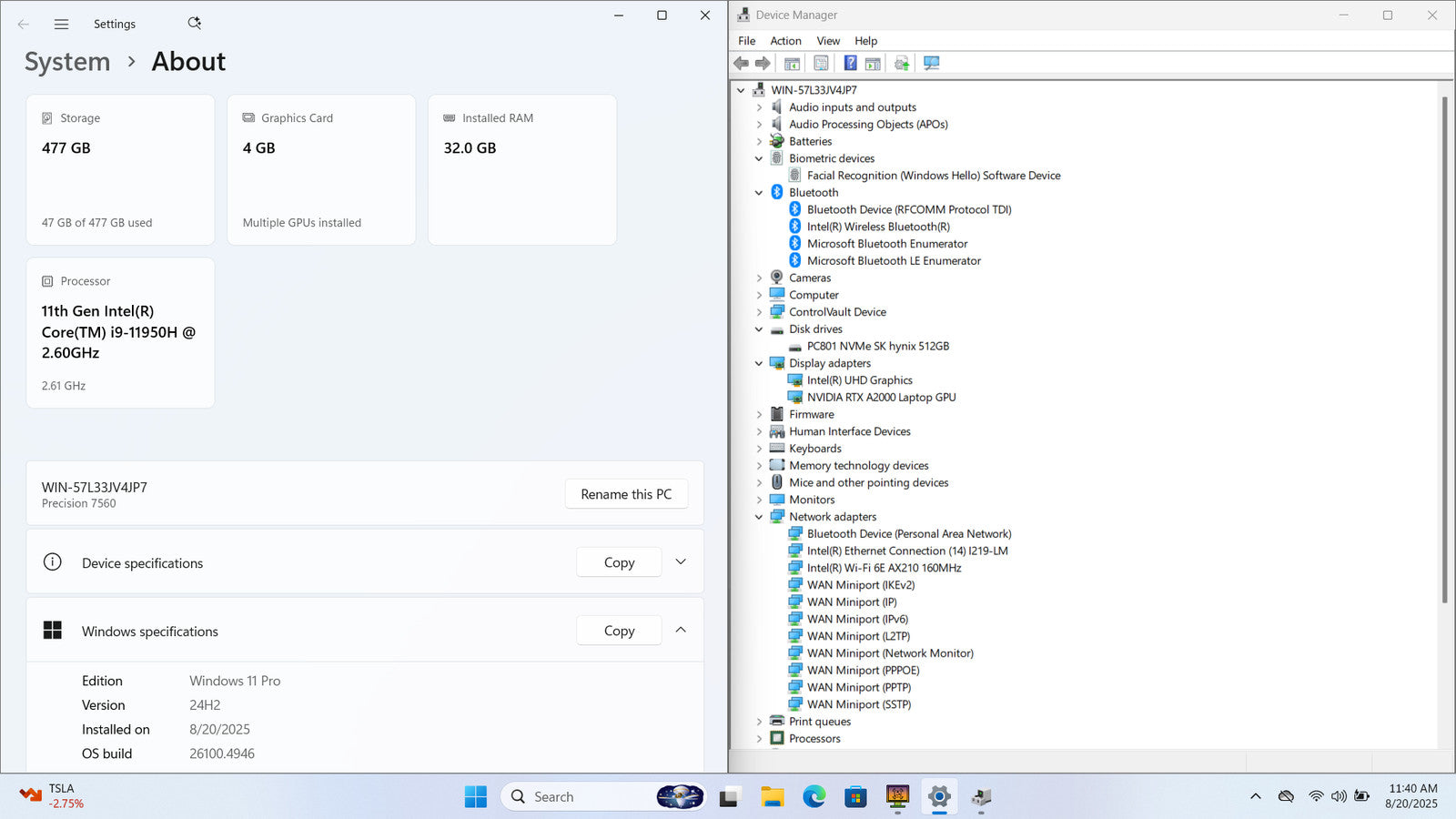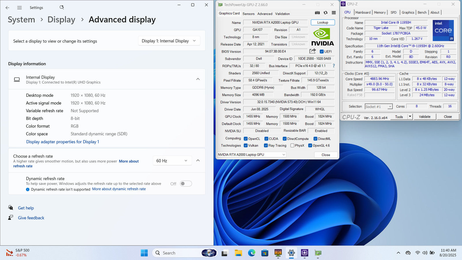 Dell Precision 7560 15 FHD Touch I9-11950H 512GB SSD 32GB W11P RTX A2000 *READ*