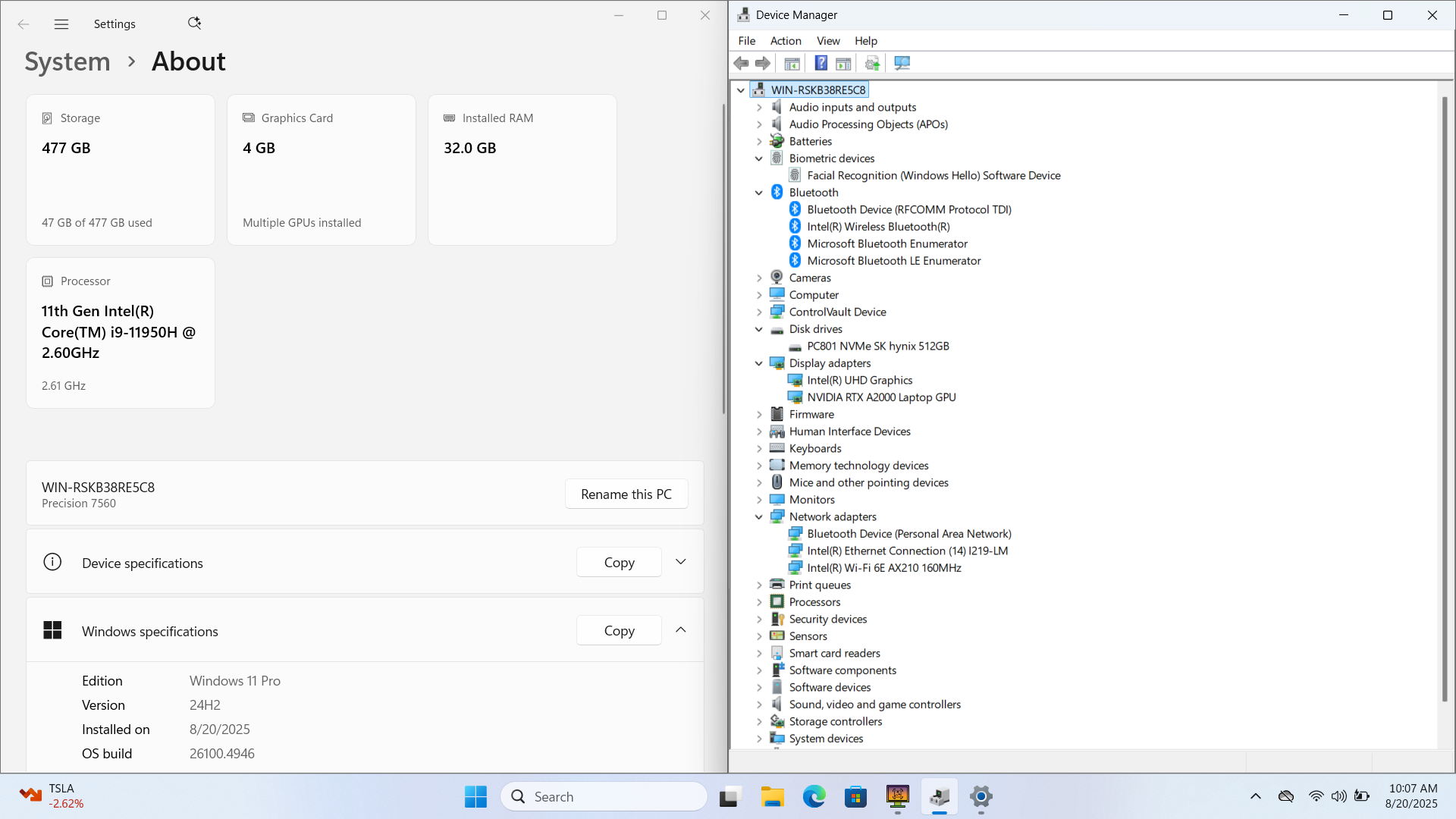Dell Precision 7560 15" FHD Touch W11P I9-11950H 512GB SSD 32GB RTX A2000