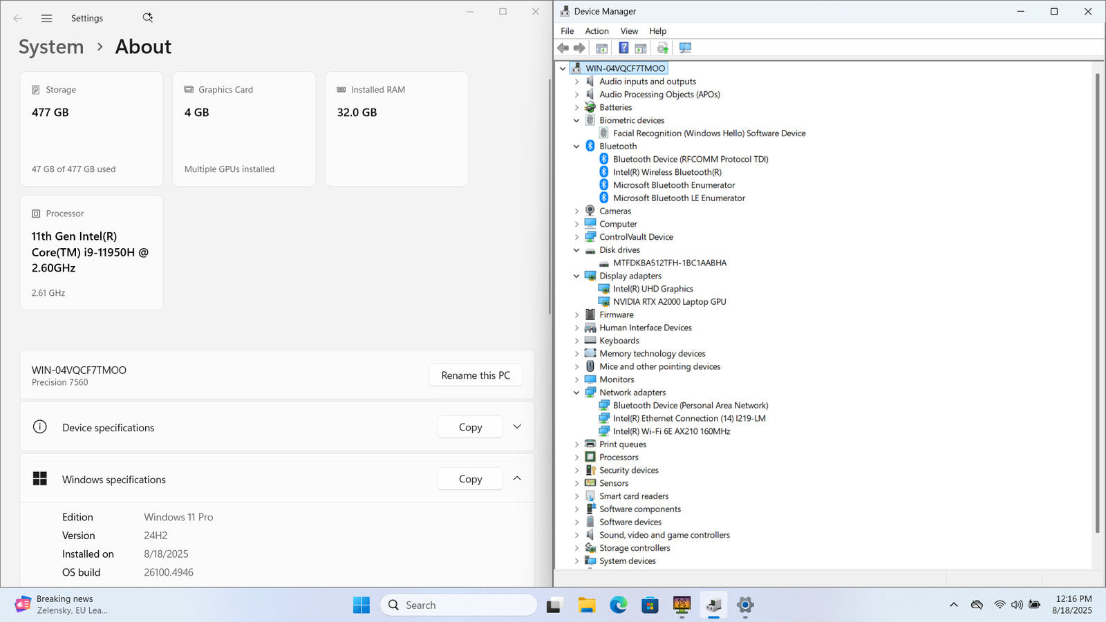 Dell Precision 7560 FHD 15" Touch I9-11950H 512GB SSD 32GB W11P RTX A2000 *READ*