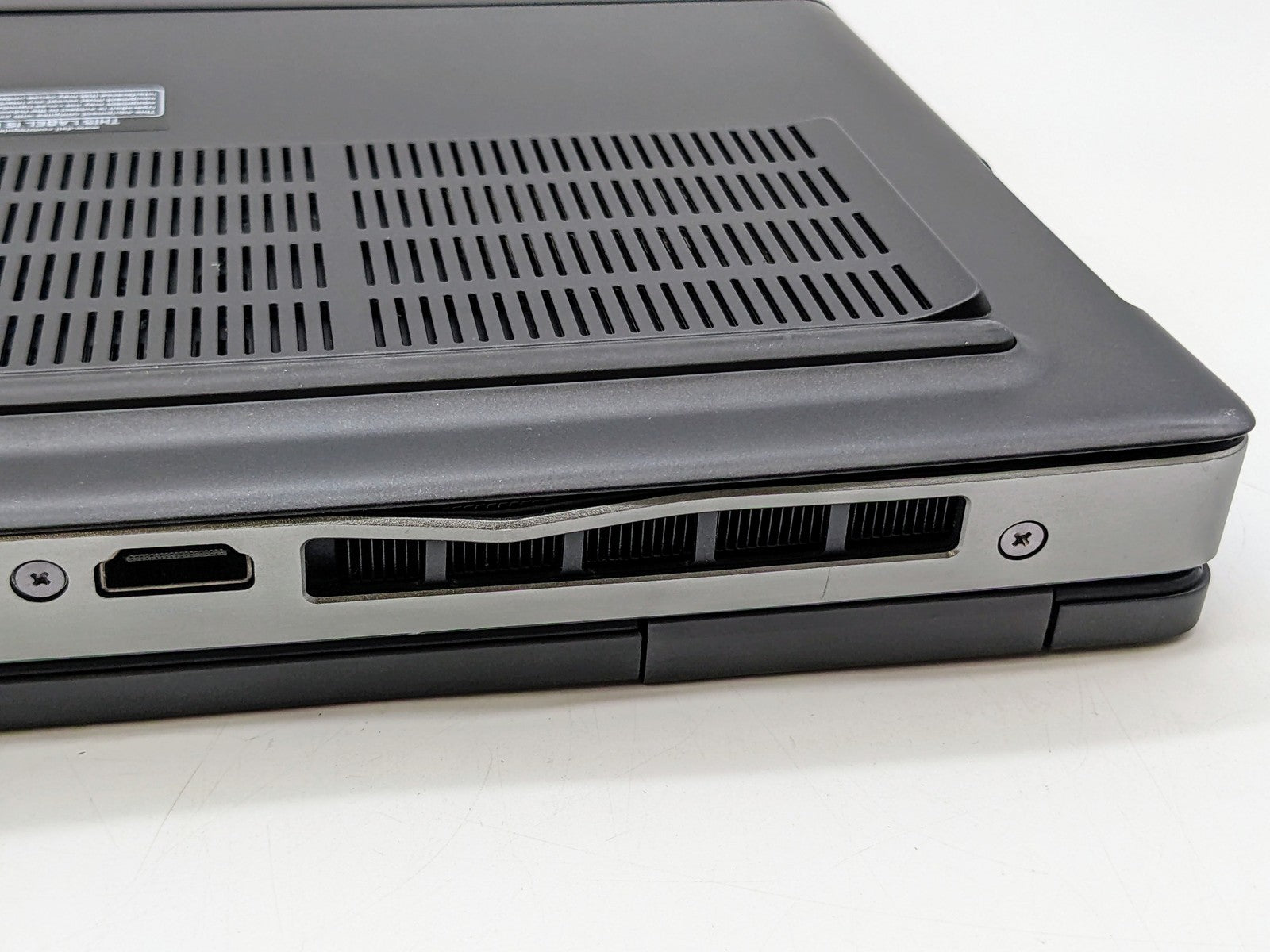 Cosmetic Defects: Interior: Scratches on and around keyboard and touchpad. Marks on display, invisible during normal use. Marks on bezel. Exterior: Sticker stain on bottom. Scuffs and crack on bottom. Scuffs and scratches on sides and top.