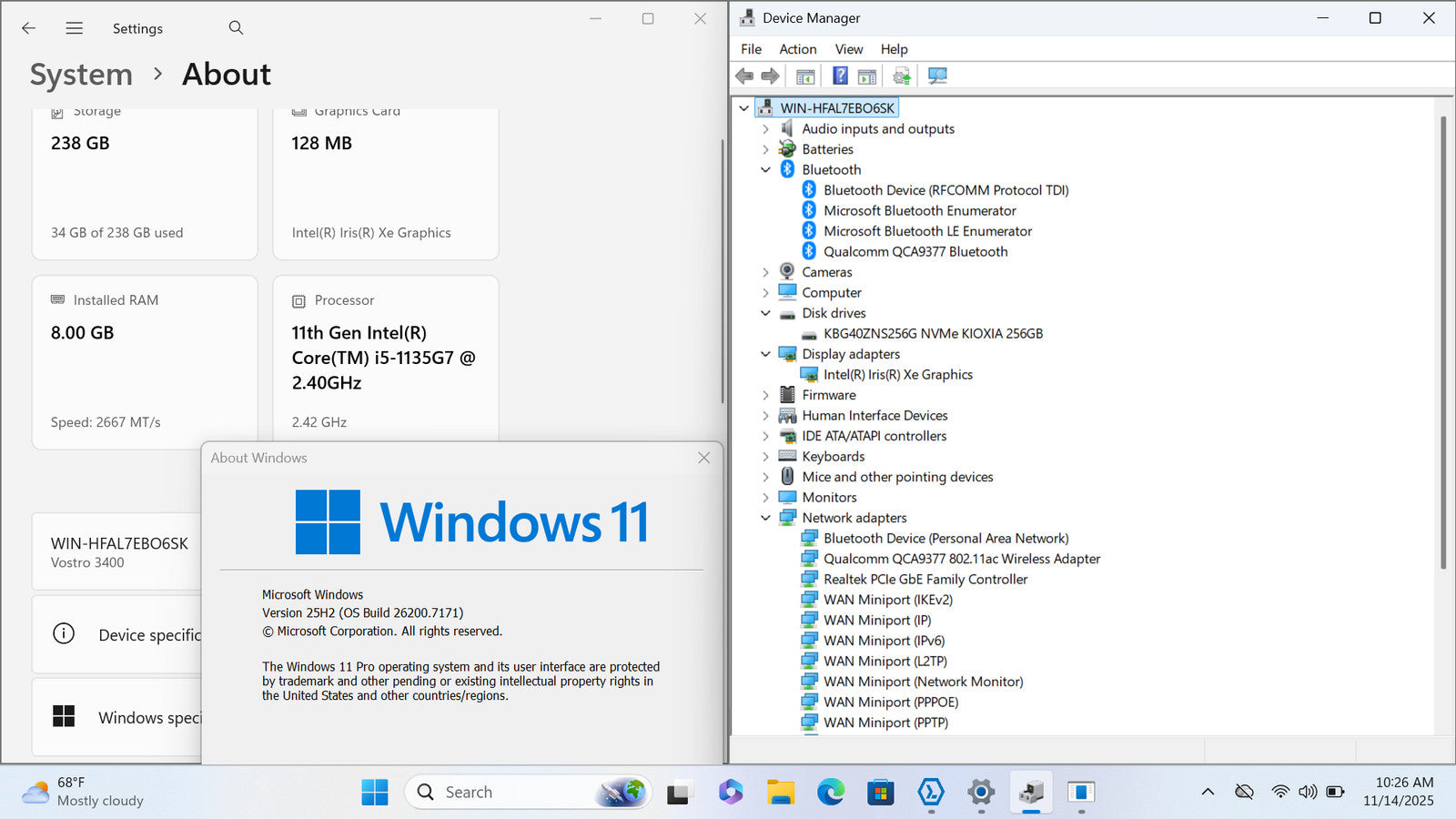 Dell Vostro 3400 14" FHD I5-1135G7 256GB SSD 8GB W11P Webcam - Ships Free