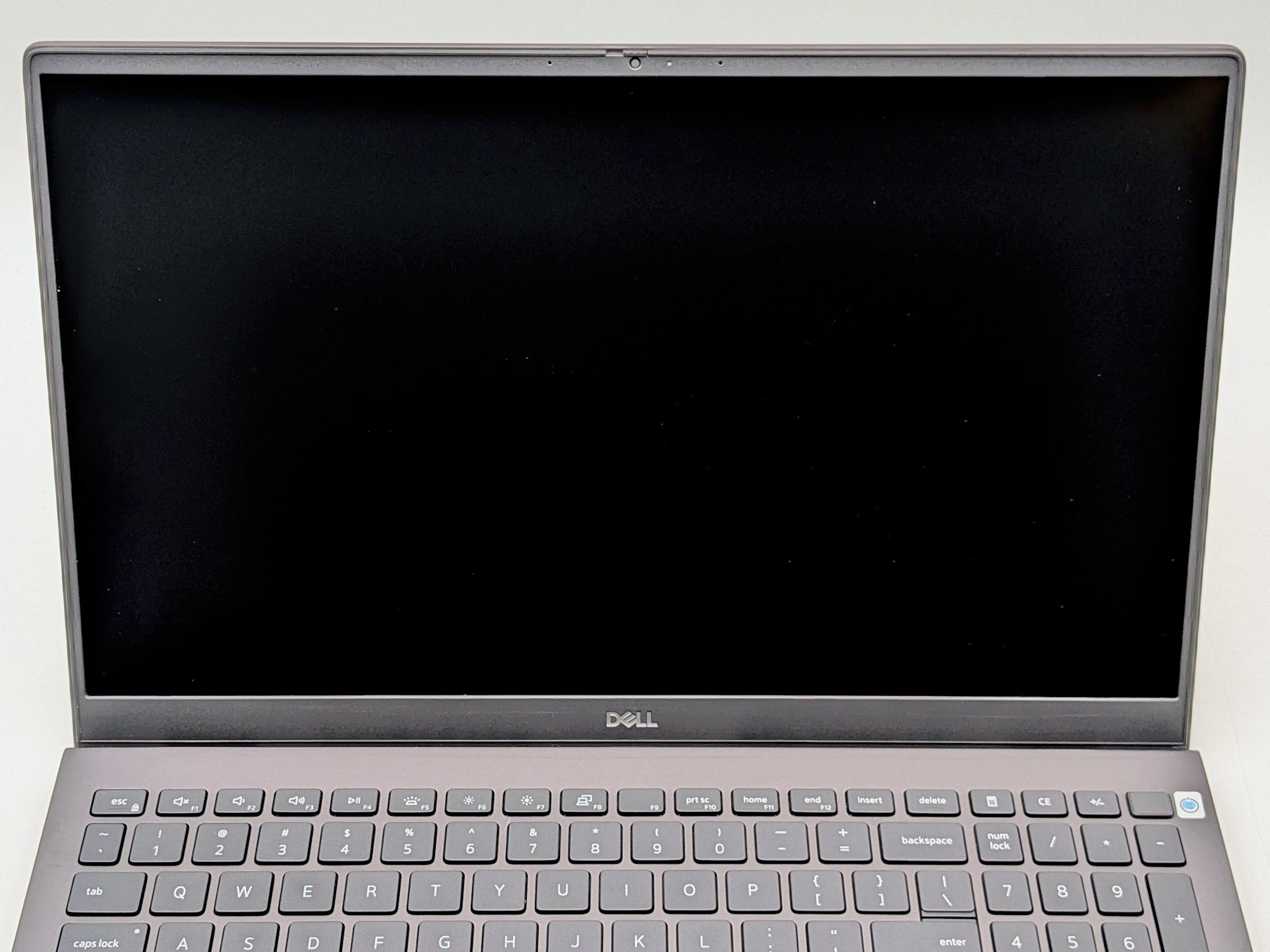 Cosmetic Defects: Interior: Display has visible keyboard imprinting. Bezel has minor scratches. Backlight has bright spots near top left. Keycaps have minor wear. Touchpad has heavy wear. Exterior: Top cover has minor scratches and small dents. Bottom cover has heavy scratches. Missing rubber foot.