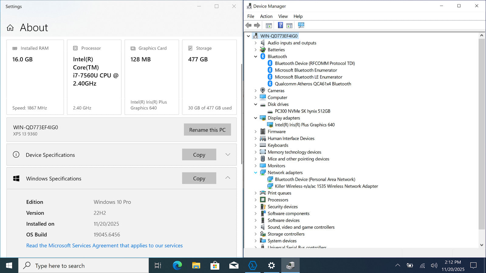 Dell XPS 13 9360 13" QHD+ Touch I7-7560U 512GB SSD 16GB W10P Webcam *READ*