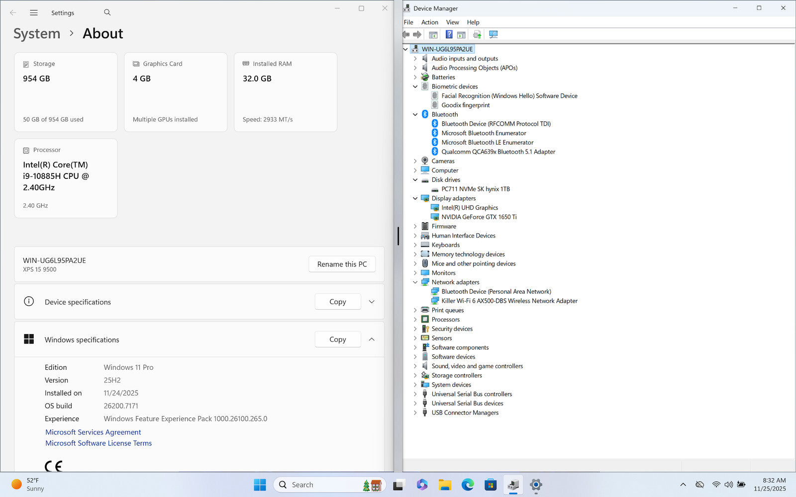 Dell XPS 15 9500 15" UHD+ 4K+ Touch I9-10885H 1TB 32GB W11P GTX 1650 Ti Backlit