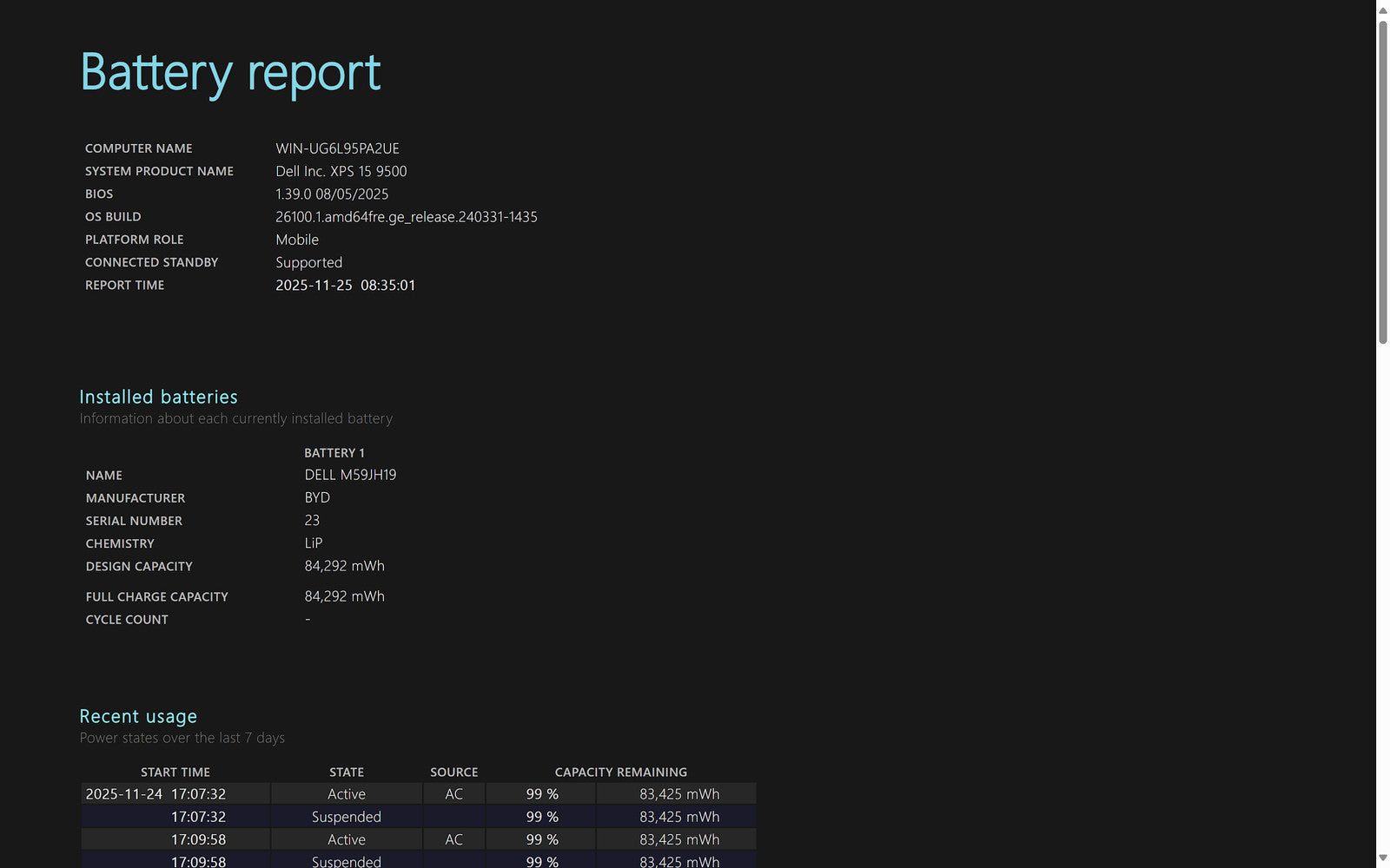 Battery Condition: 84,292/84,292 mWh 100.00%