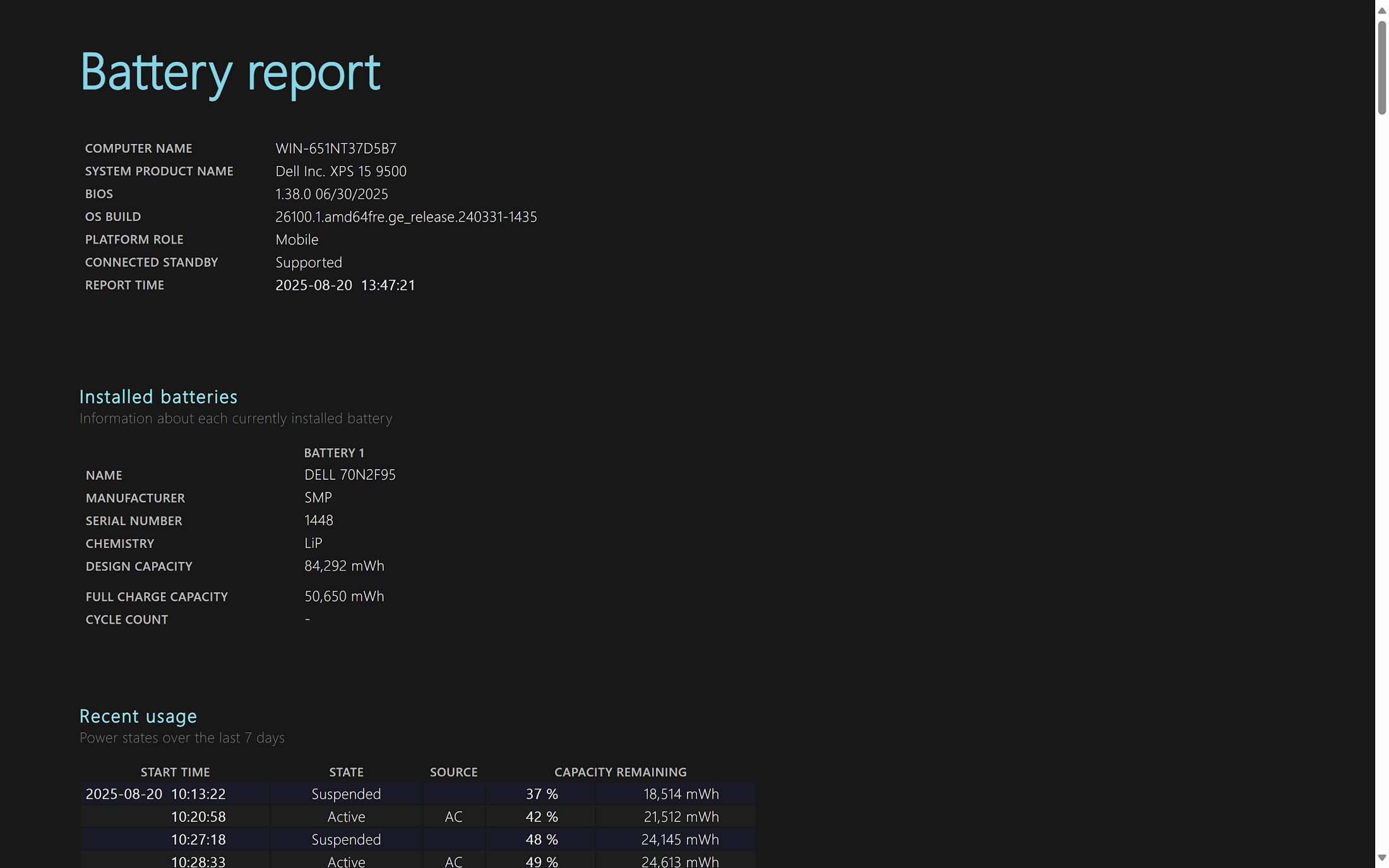 Battery Condition: 50,650/84,292 mWh 60.09%