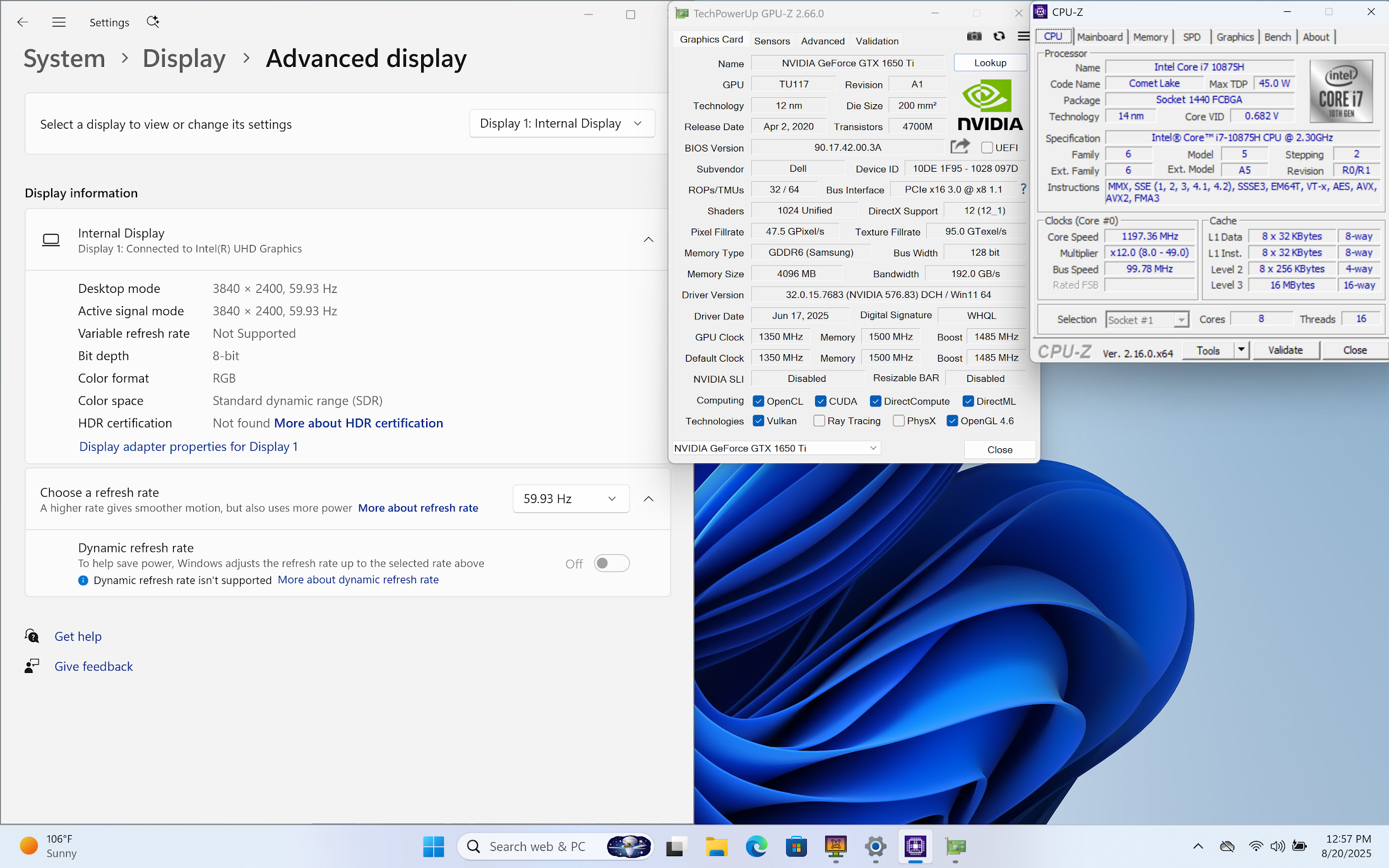 Dell XPS 15 9500 16" 4K+ Touch I7-10875H 1TB SSD 16GB W11P GeForce GTX 1650 Ti