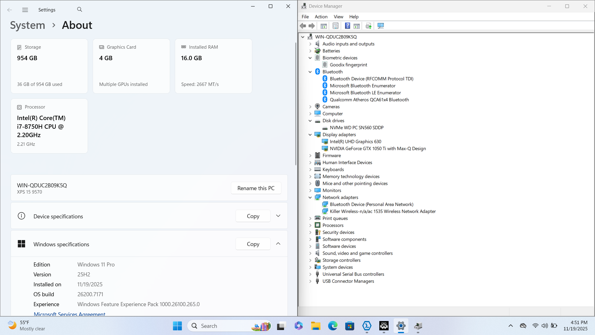 Dell XPS 15 9570 15" FHD I7-8750H 1TB 16GB W11P GTX 1050 Ti Max-Q Backlit FPR