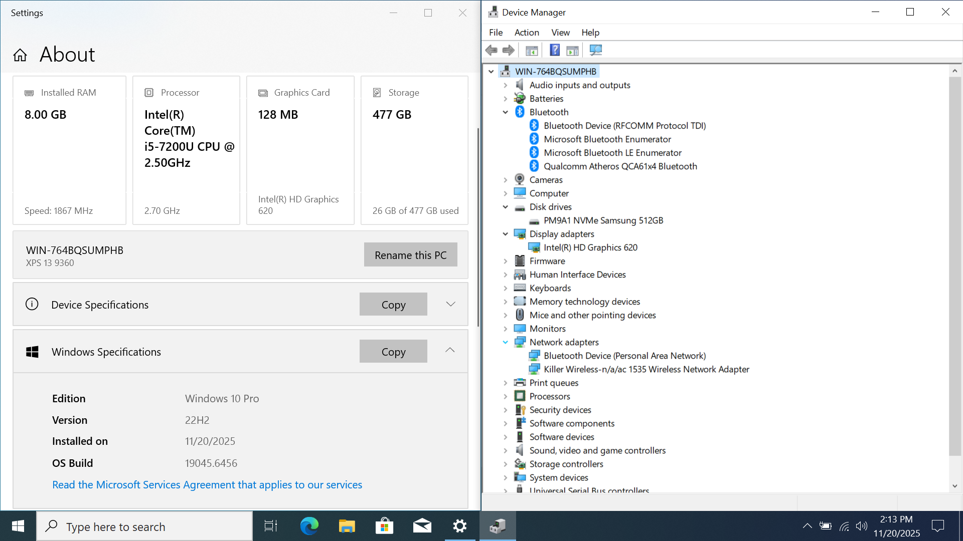 Dell XPS 9360 13" FHD I5-7200U 512GB SSD 8GB W10P Webcam Backlit *READ*