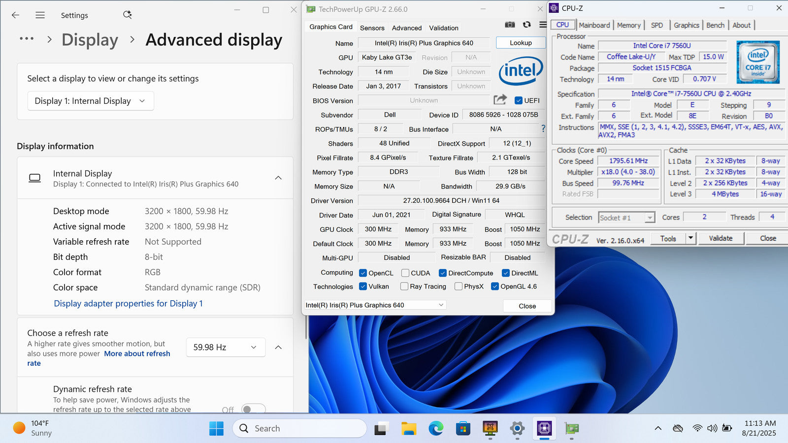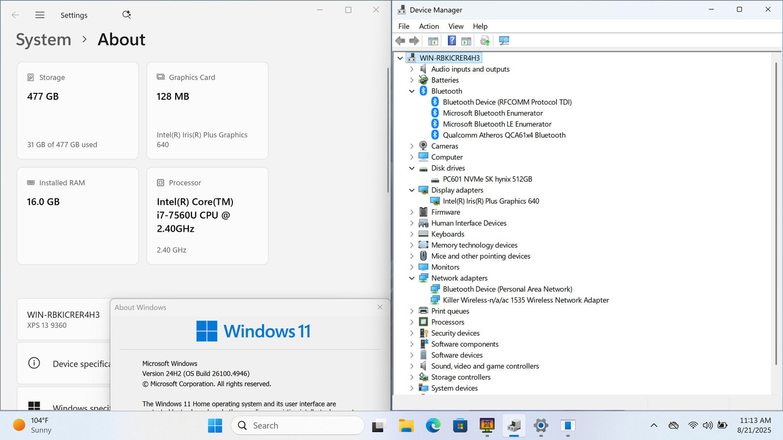 Dell XPS 9360 13" QHD+ Touch I7-7560U 512GB SSD 16GB W11 Webcam Backlit