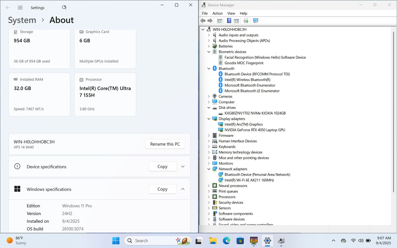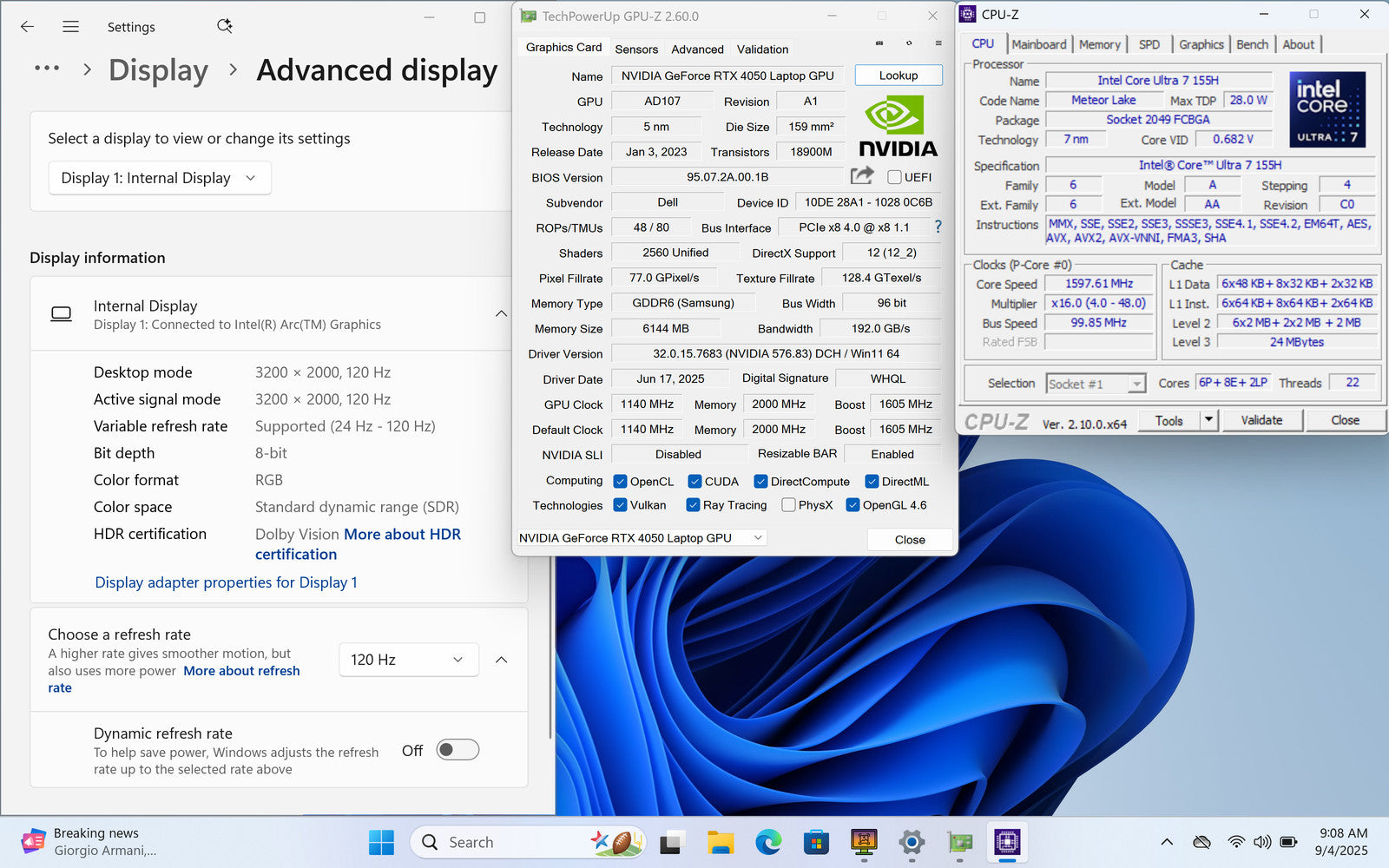 Dell XPS 9440 14" 3200 x 2000 Ultra 7 155H 1 TB SSD 32GB GeForce RTX 4050 W11P