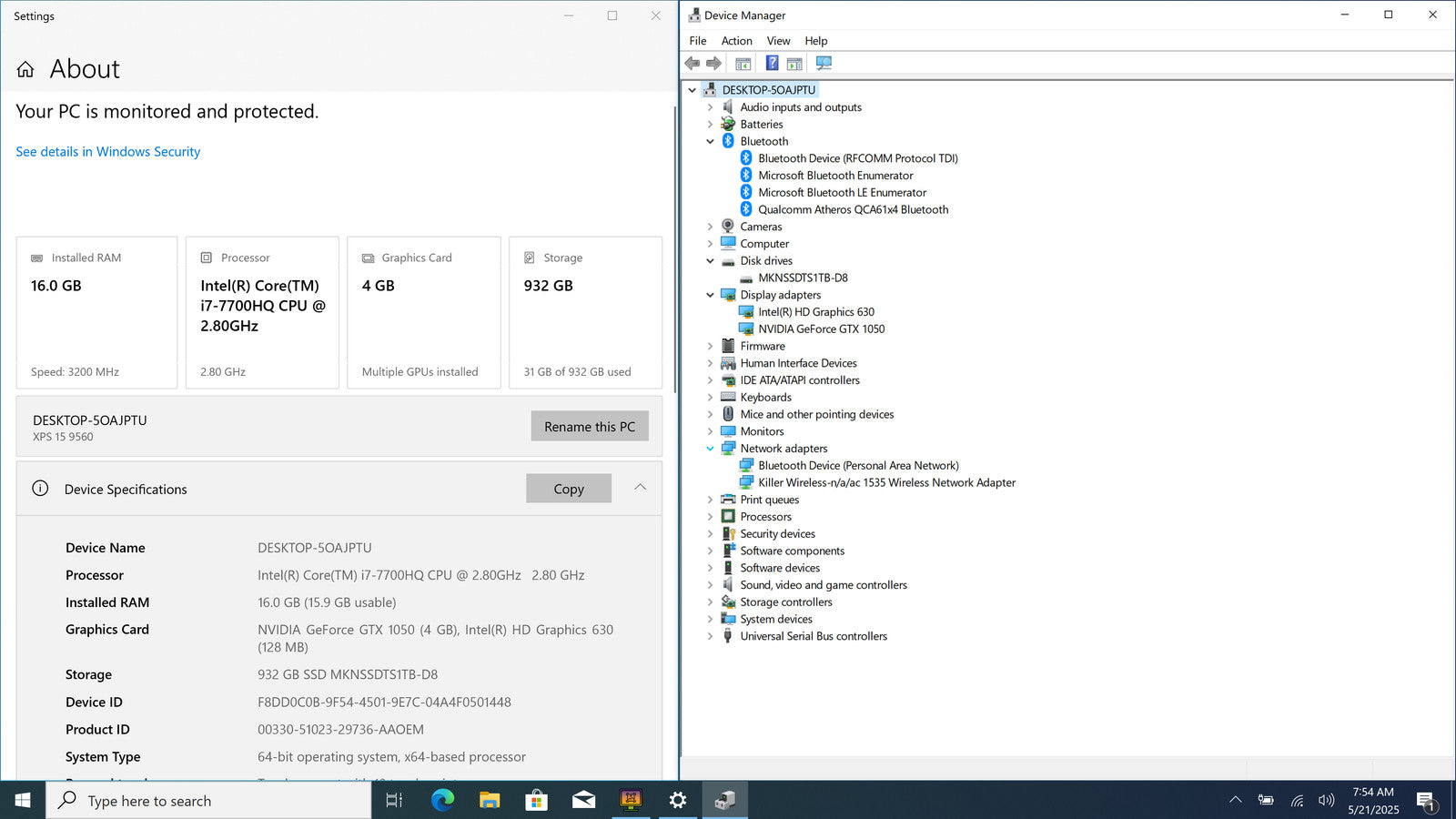 Dell XPS 9560 15" UHD 4K Touch I7-7700HQ 1TB 16GB W10P GTX 1050 Webcam Backlit