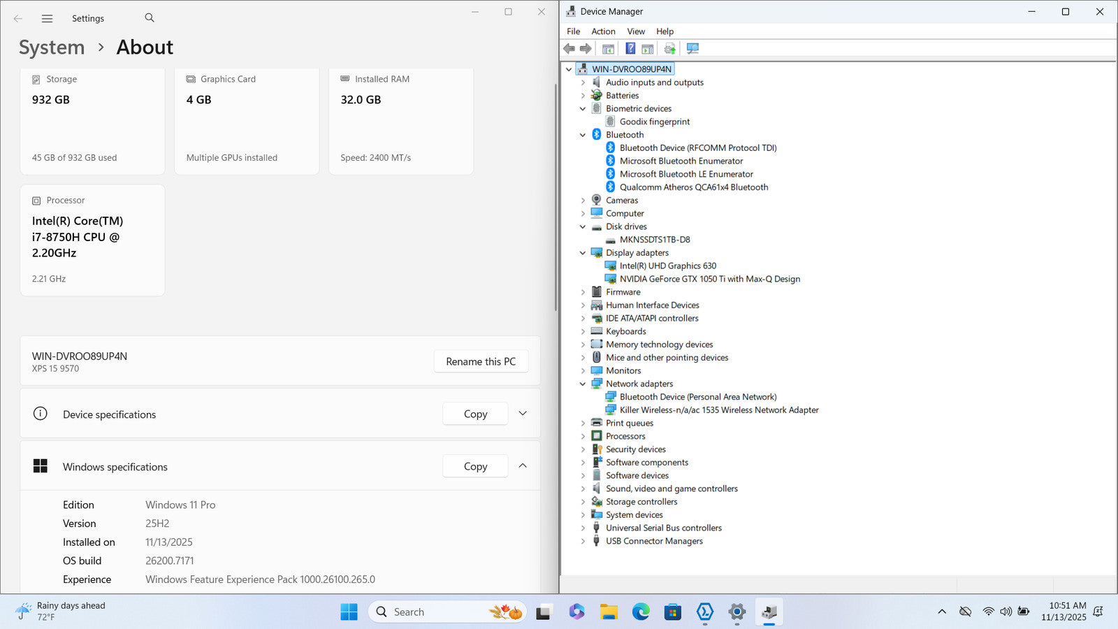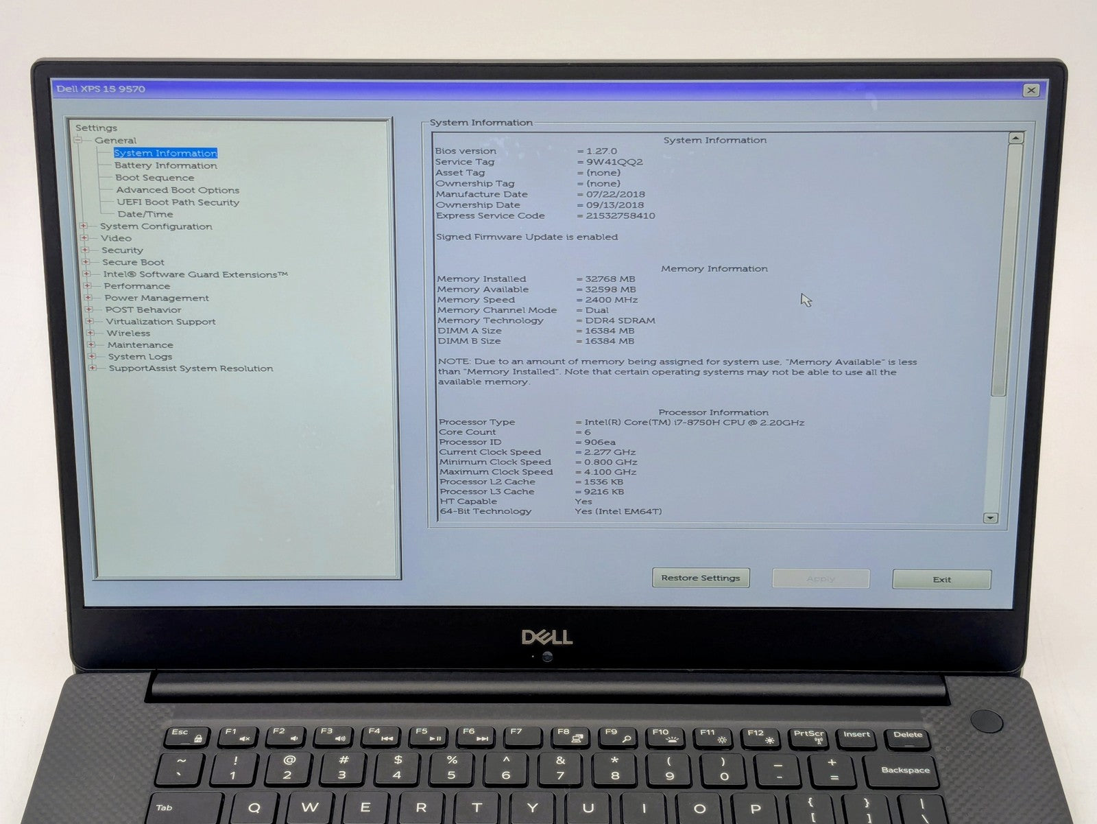Dell XPS 9570 15" FHD I7-8750H 1TB SSD 32GB W11P GeForce GTX 1050 Ti FPR *READ*