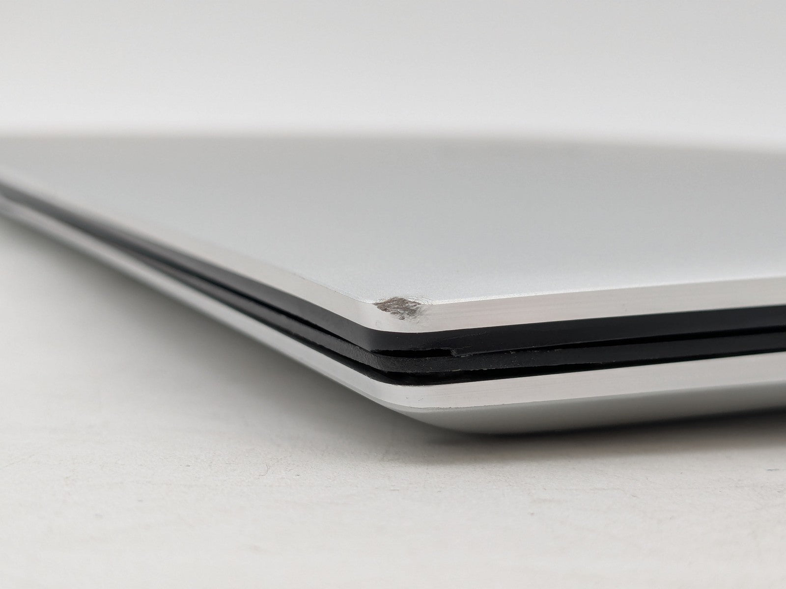 Cosmetic Defects: Interior: Marks on display, invisible during normal use. Light wear on keyboard, touchpad, and palm rest. Bezel chipped on top-right corner. Exterior: Minor wear and light scratches on lid, bottom cover, and along edges of device. Right side corner of lid dented.