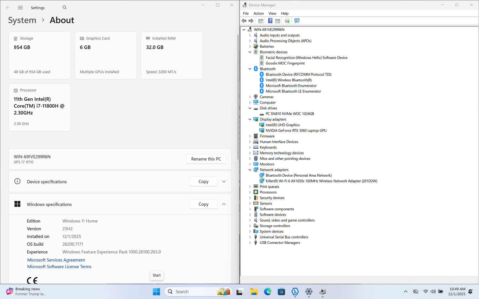 Dell XPS 9710 17" UHD+ 4K+ Touch I7-11800H 1TB 32GB W11 RTX 3060 Backlit FPR