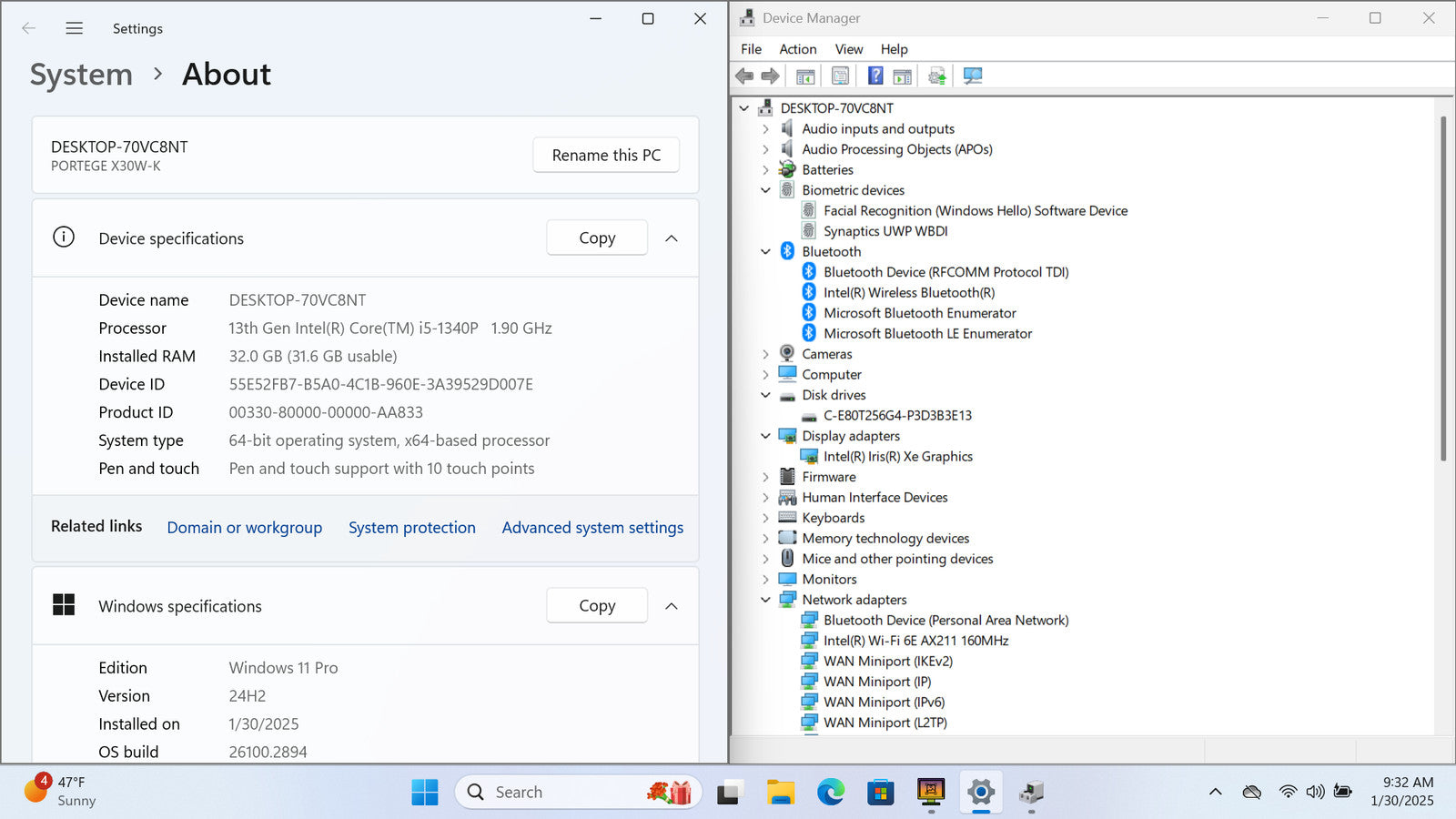 DYNABOOK PORTEGE X30W-K 13" FHD Touch 13TH I5-1340P 256GB SSD 32GB W11P *READ*
