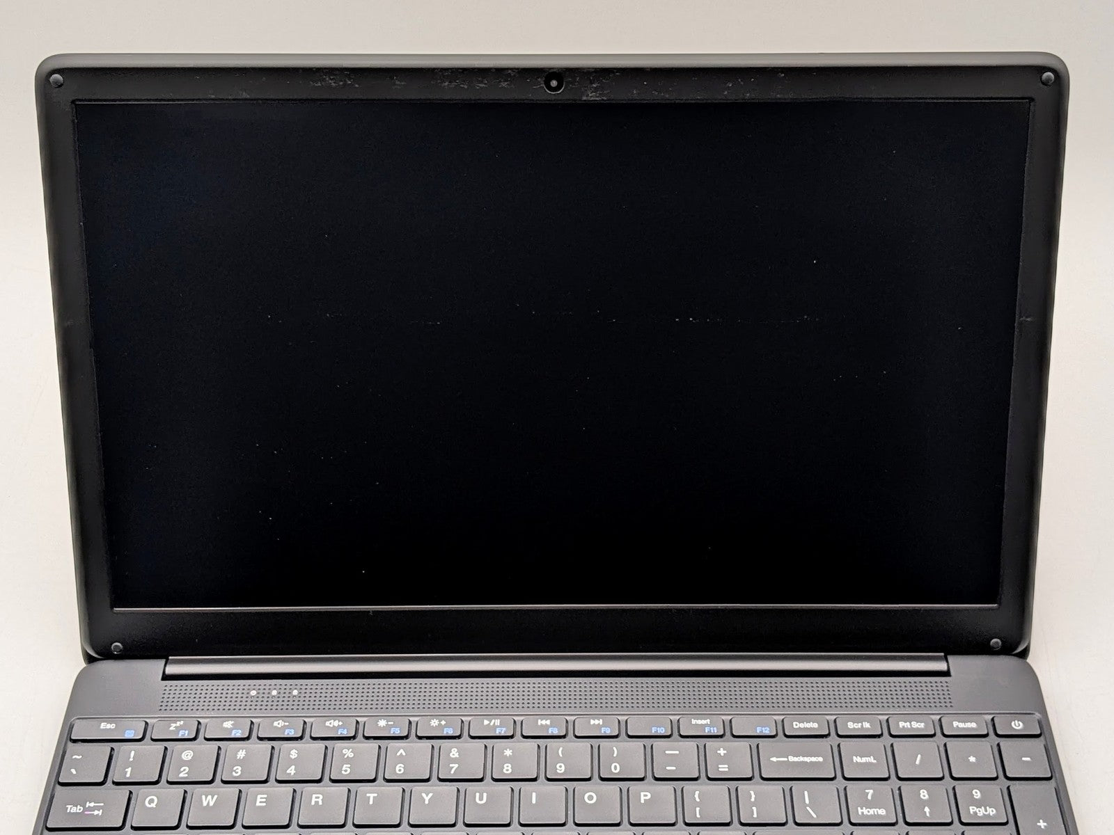 Cosmetic Defects: Interior: Display has visible scratches and keyboard imprinting. Light wear on keyboard, touchpad. Moderate to heavy scuffing on palm rest and display bezel. Exterior: Light wear visible on all exterior surfaces. Moderate scuffing along edges of top cover.
