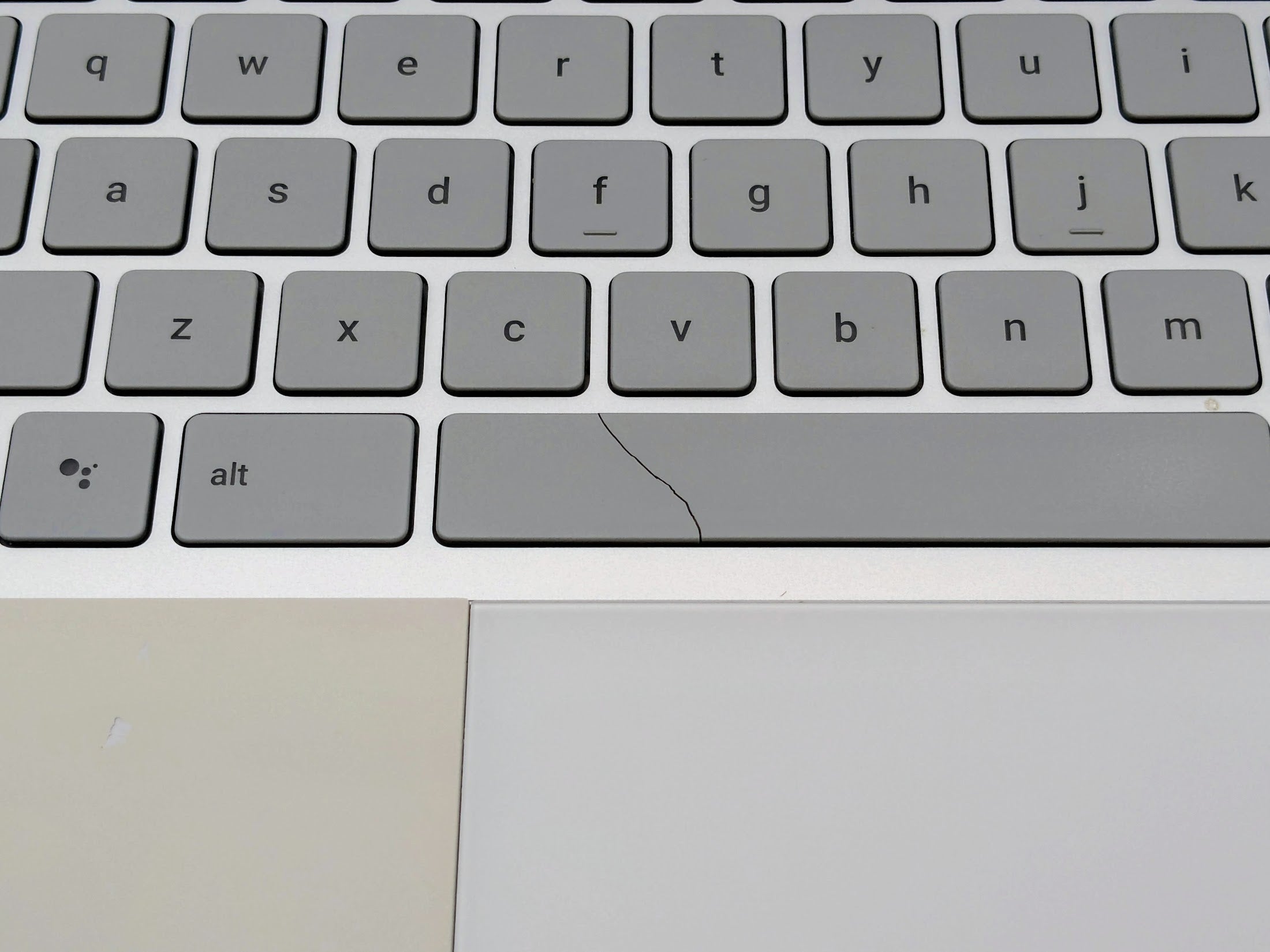 Cosmetic Defects: Interior: Palmrest has heavy wear/discoloration. Spacebar is cracked, but useable. Exterior: Top and bottom covers have some wear/small visible scratches.
