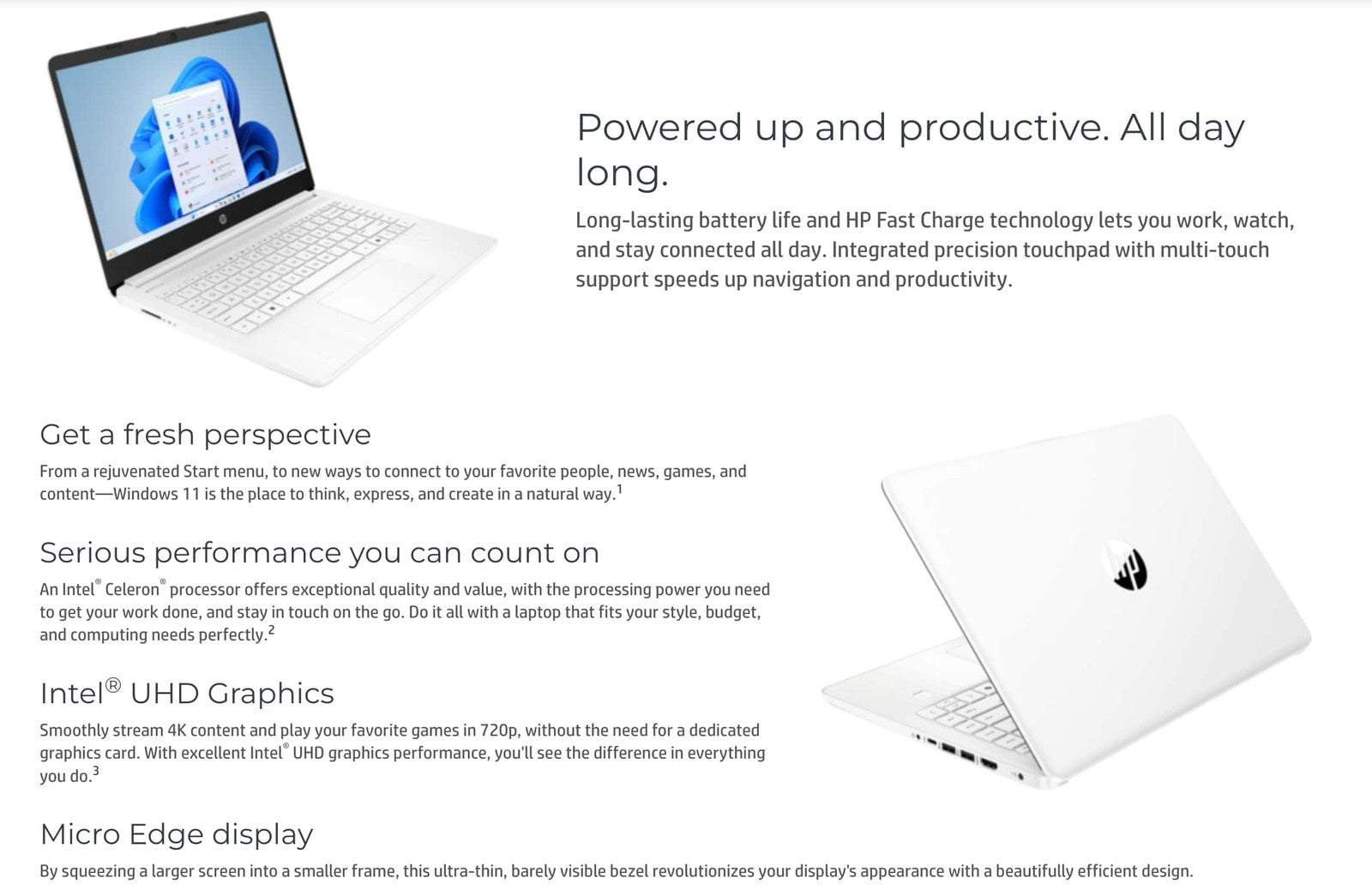 •title: HP - 14 Laptop 14.0 HD Display (Intel Celeron N4500, 16GB DDR4, 1TB PCIe SSD, Intel UHD, WiFi 6, Webcam, Win 11 Pro) - Snowflake White