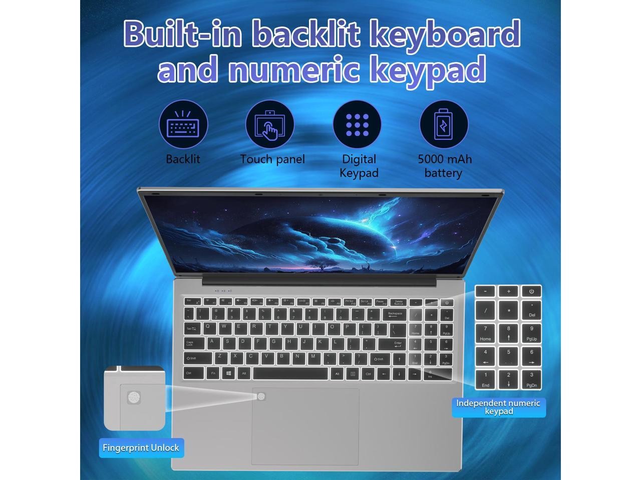 •Keyboard: Full-size backlit soft grey English keyboard with numeric keypad