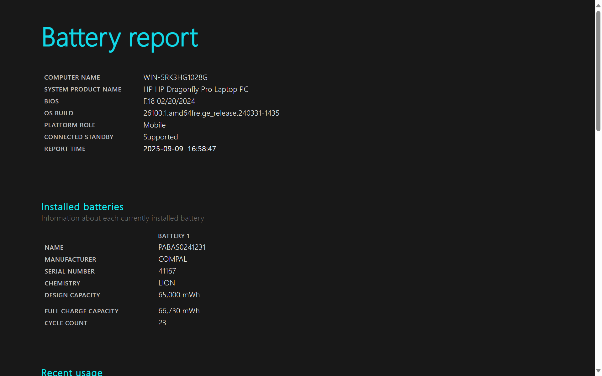 Battery Condition: 65,000/66,730 mWh 97.41%