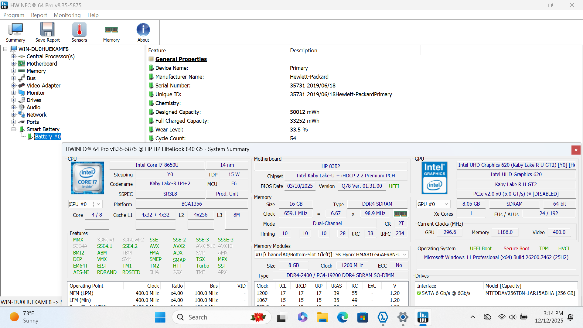 HP Elitebook 840 G5 14" FHD I7-8650U 256GB SSD 16GB W11P Webcam Backlit *READ*