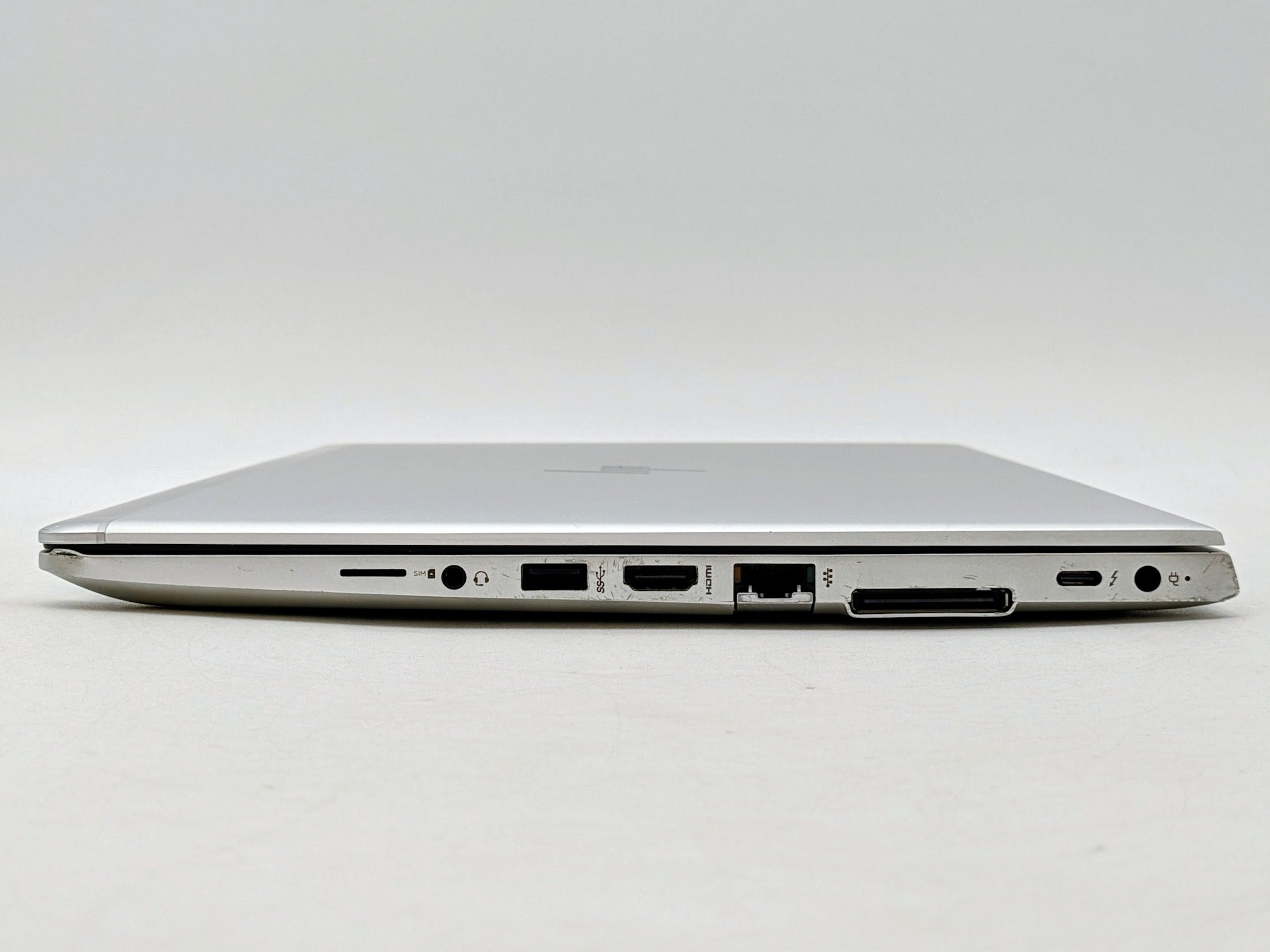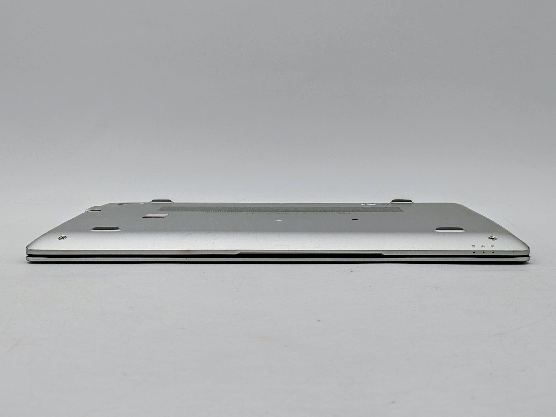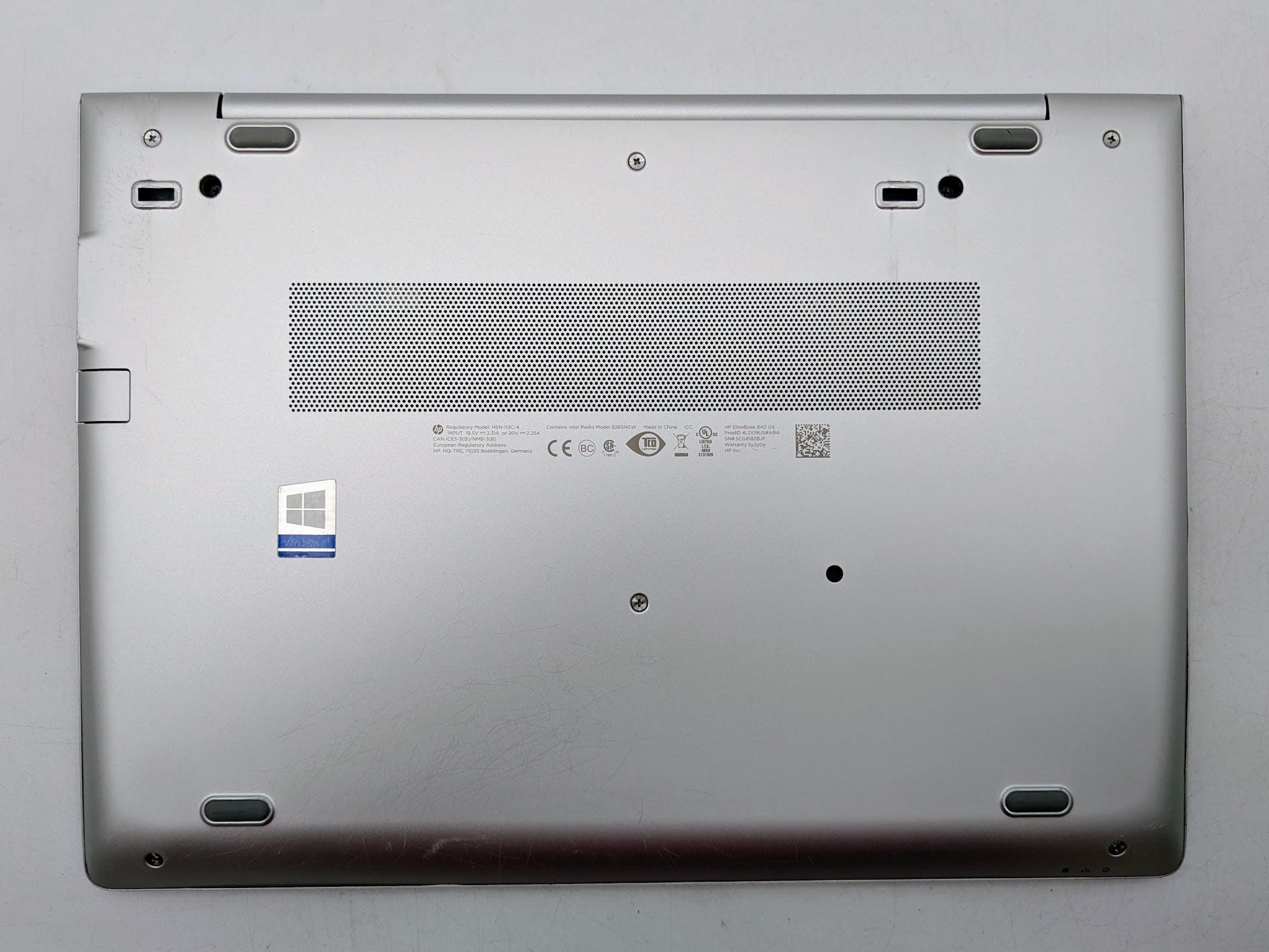 Cosmetic Defects: Interior: Bezel has minor wear. Keycaps and touchpad buttons have moderate wear. Palmrest front right corner has visible dent. Exterior: Top cover has dented front corners. Bottom cover has heavy scratches and scuffs, dents in back corners.