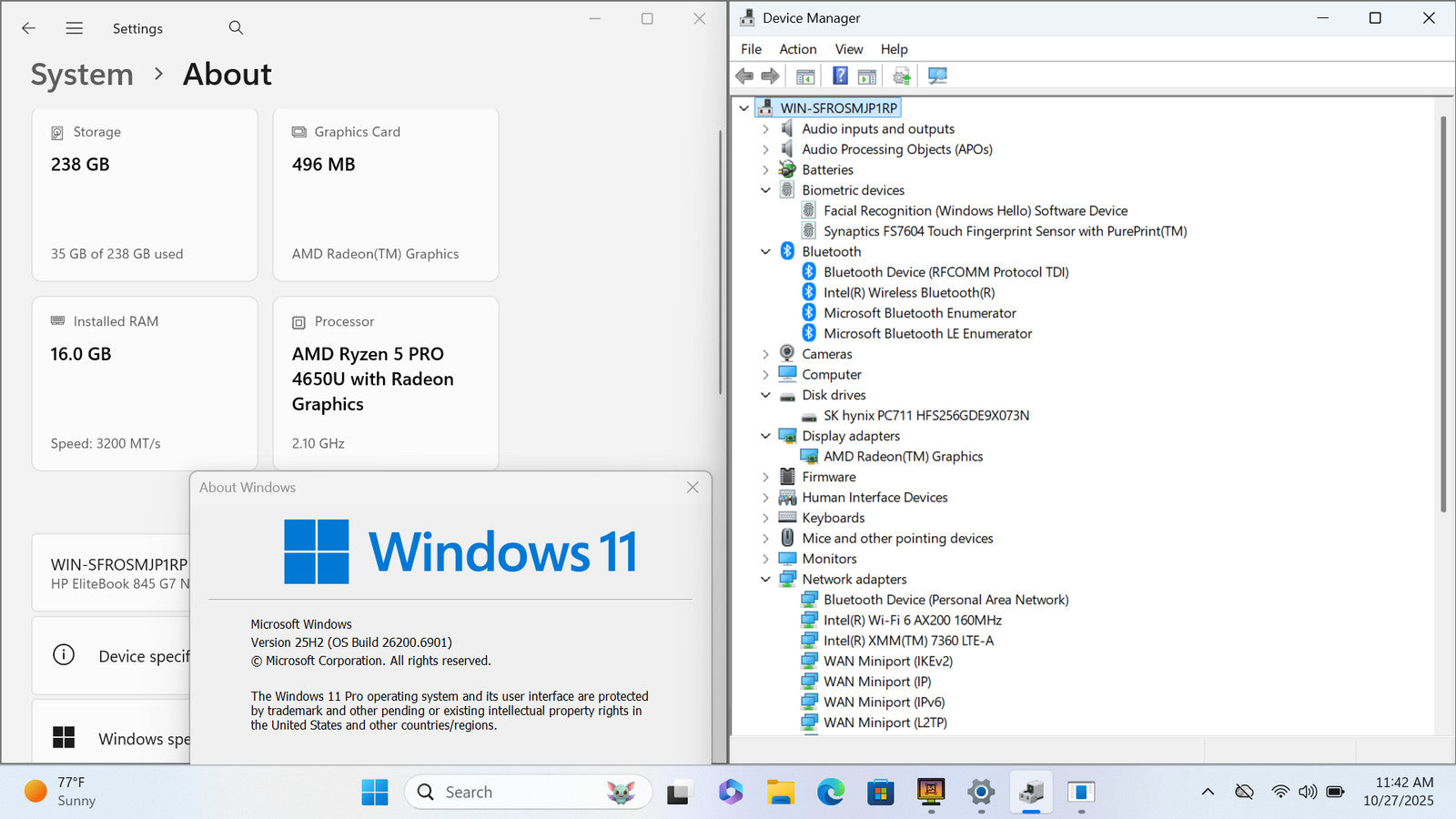HP EliteBook 845 G7 14" FHD RYZEN 5 PRO 4650U 256GB 16GB W11P Backlit 4G LTE GPS