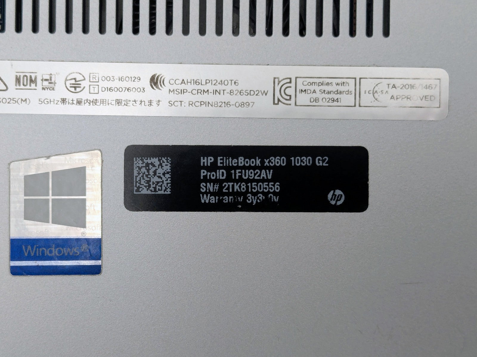 HP EliteBook x360 1030 G2 2-in-1 13" FHD Touch I7-7600U 256GB SSD 8GB W10P
