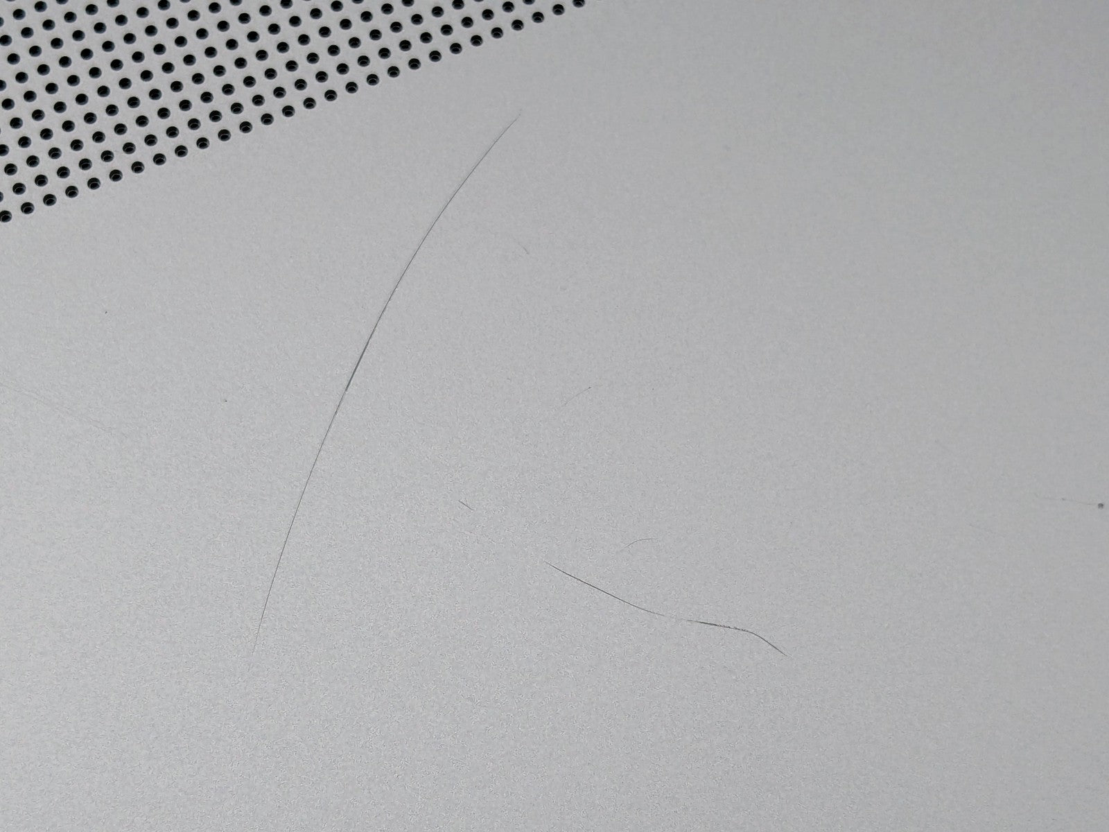 Cosmetic Defects: Interior: Marks on display, invisible during normal use. Light wear on keyboard and palm rest. Exterior: Light wear and visible scratches on lid and bottom cover, scuffed/scratched along edges of device.