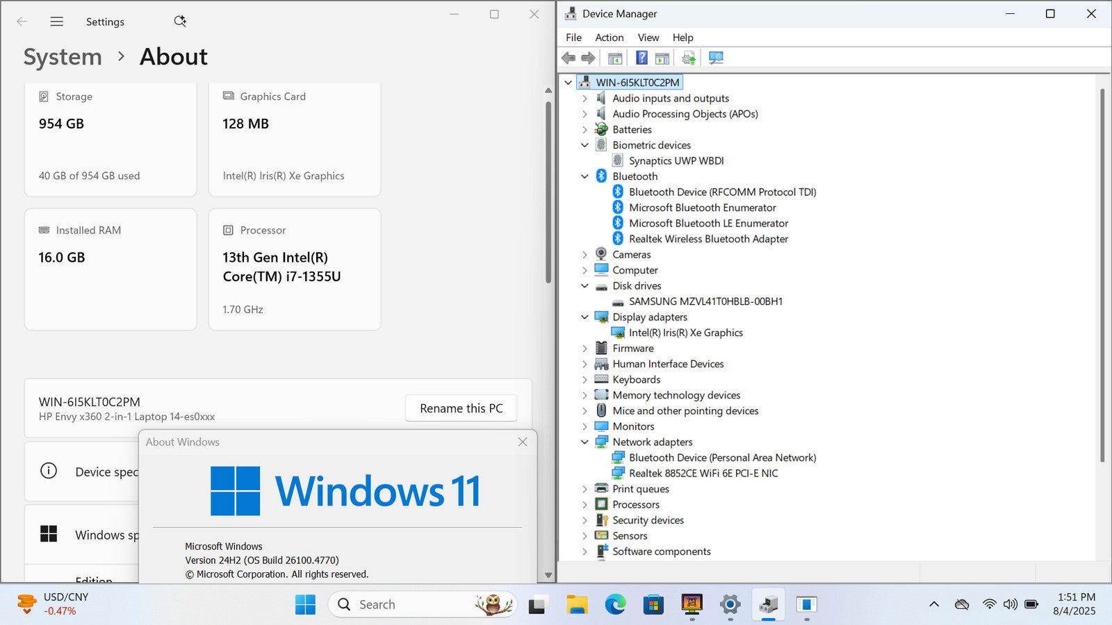 HP ENVY X360 14 es0033dx 2-in-1 14" FHD Touch I7-1355U 1TB 16GB W11 Backlit FPR