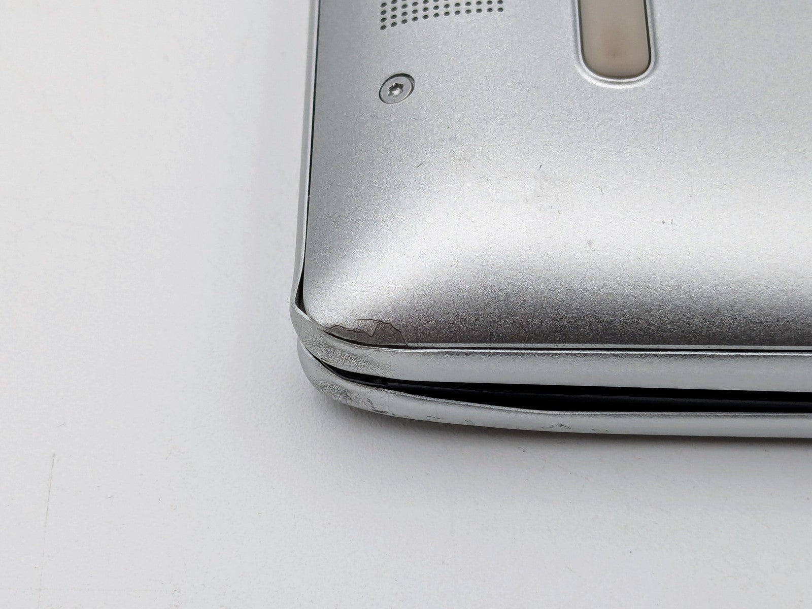 Functional Defects: Touch screen only works on right 60% of screen, due to damage. Black burns on left top corner and right top corner of screen. Part of glass bezel missing. Cracks through screen. Speakers are a bit quiet, but work.