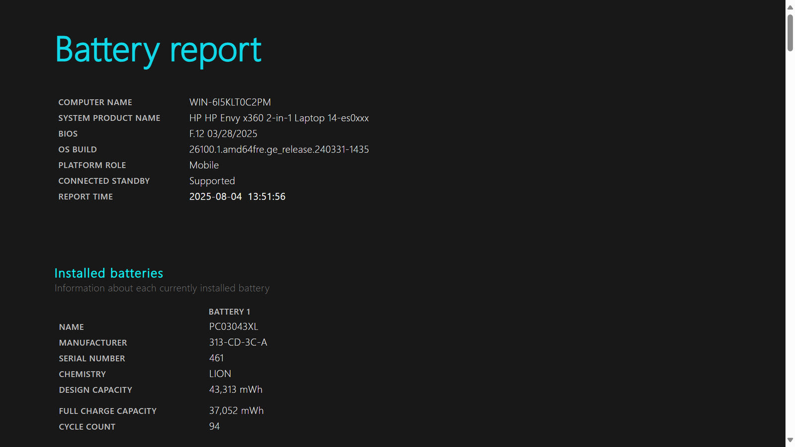 Battery Condition: 37,052/43,313 mWh 85.54%
