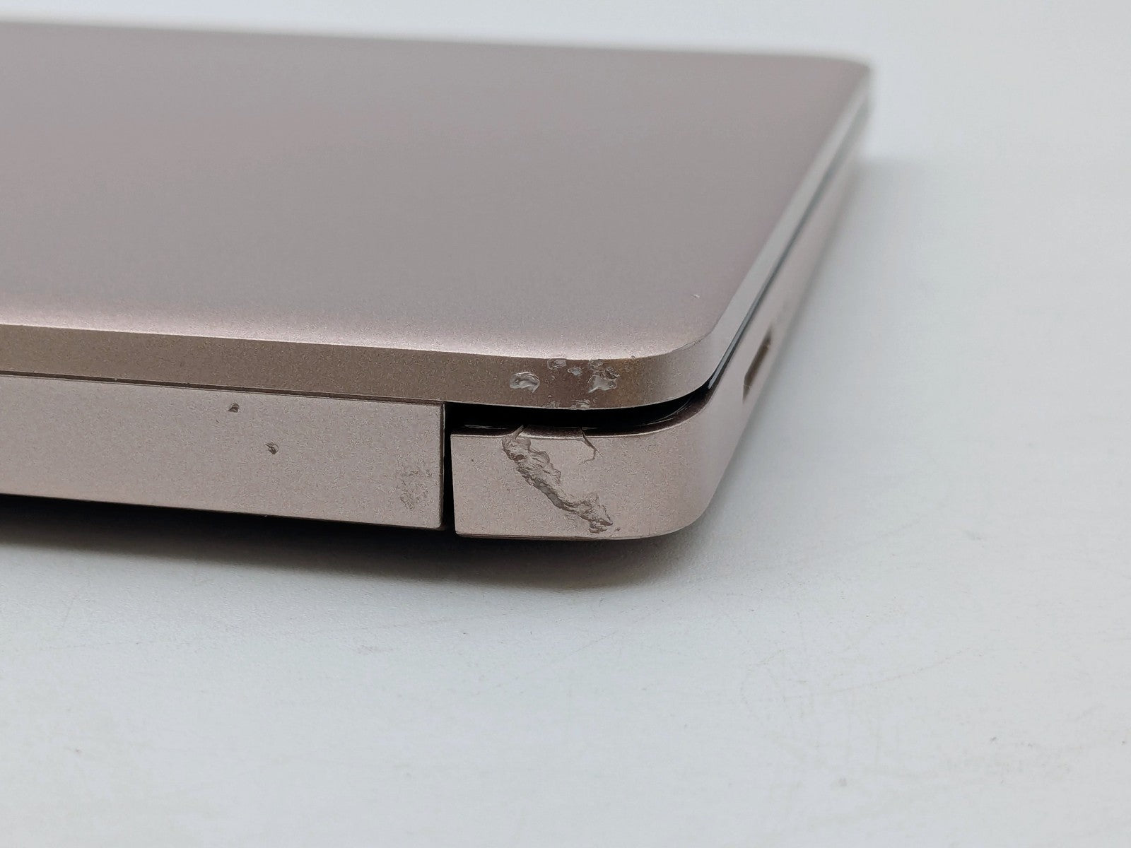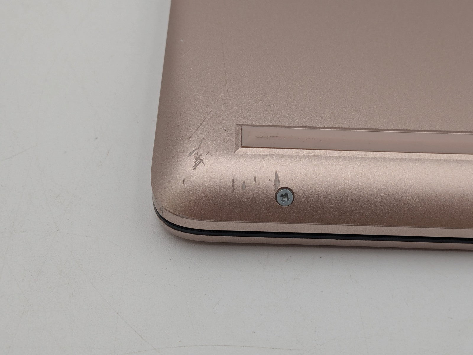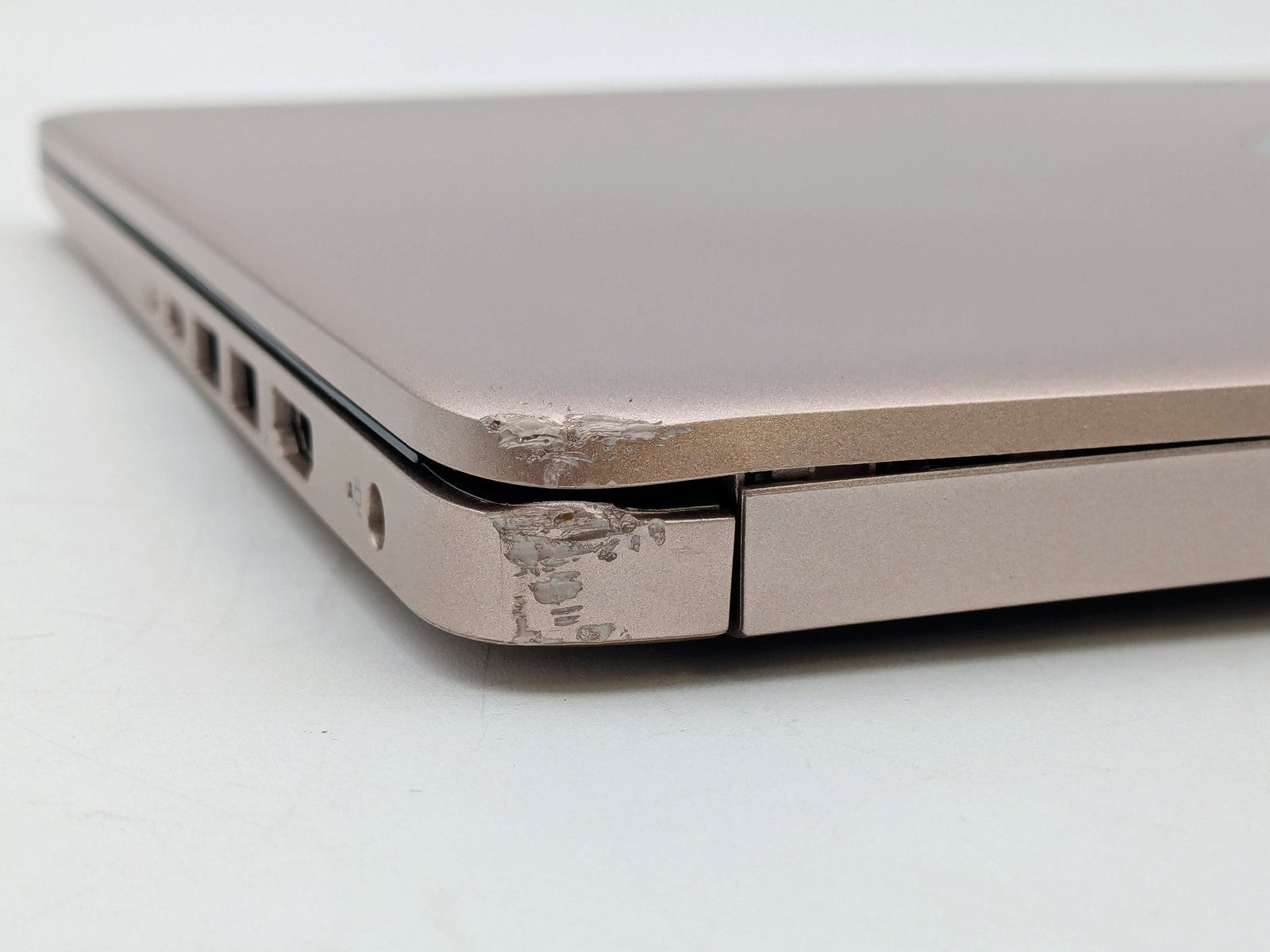 Cosmetic Defects: Interior: Display has visible keyboard imprinting. Palmrest has small visible scratches. Exterior: Both covers have heavy gouges, scratches and cracks in back side near hinge cover. Bottom cover has small visible scratches near front.
