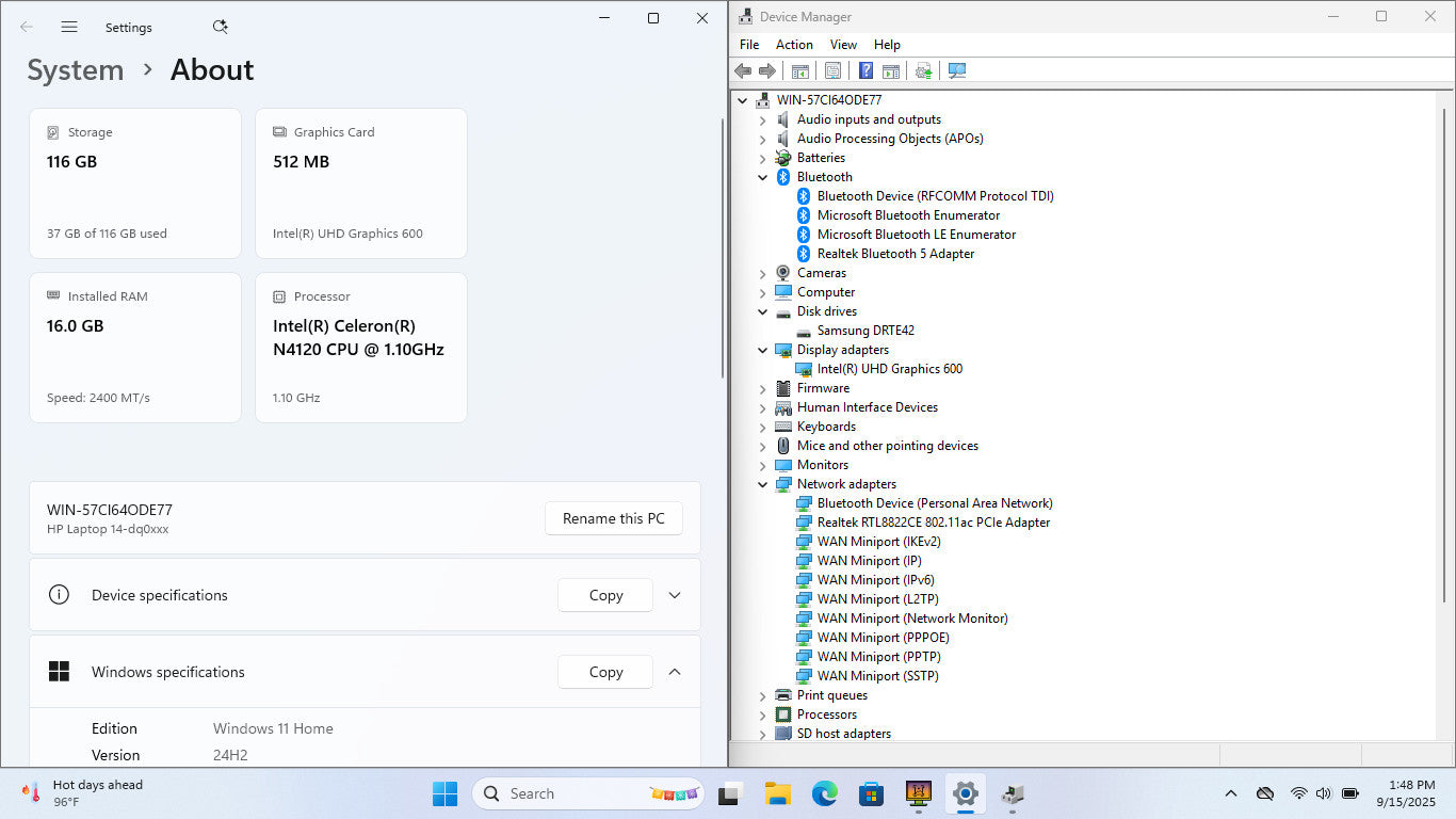 HP Laptop 14-dq0762dx 14" HD CELERON N4120 128GB SSD 16GB W11 Webcam